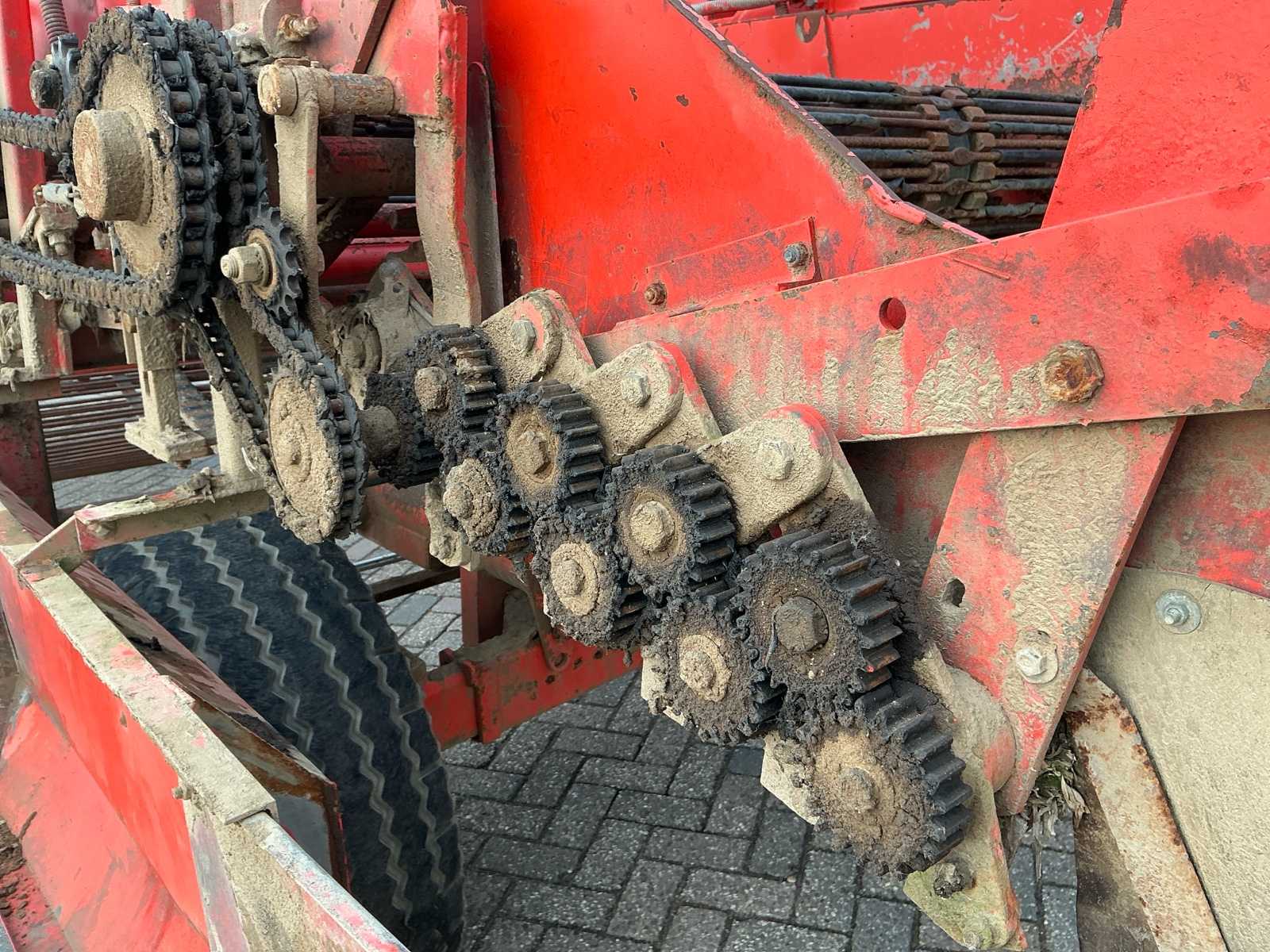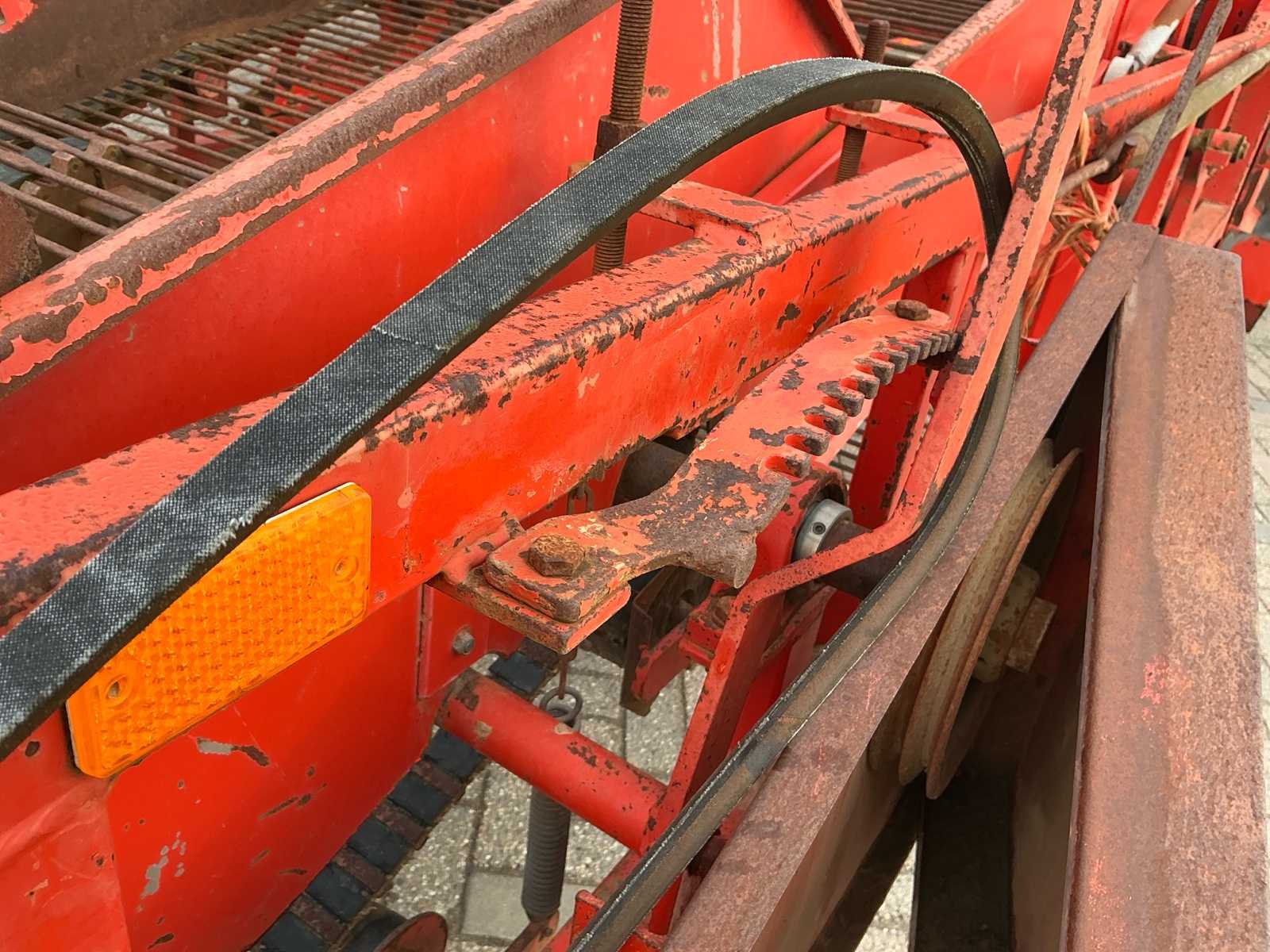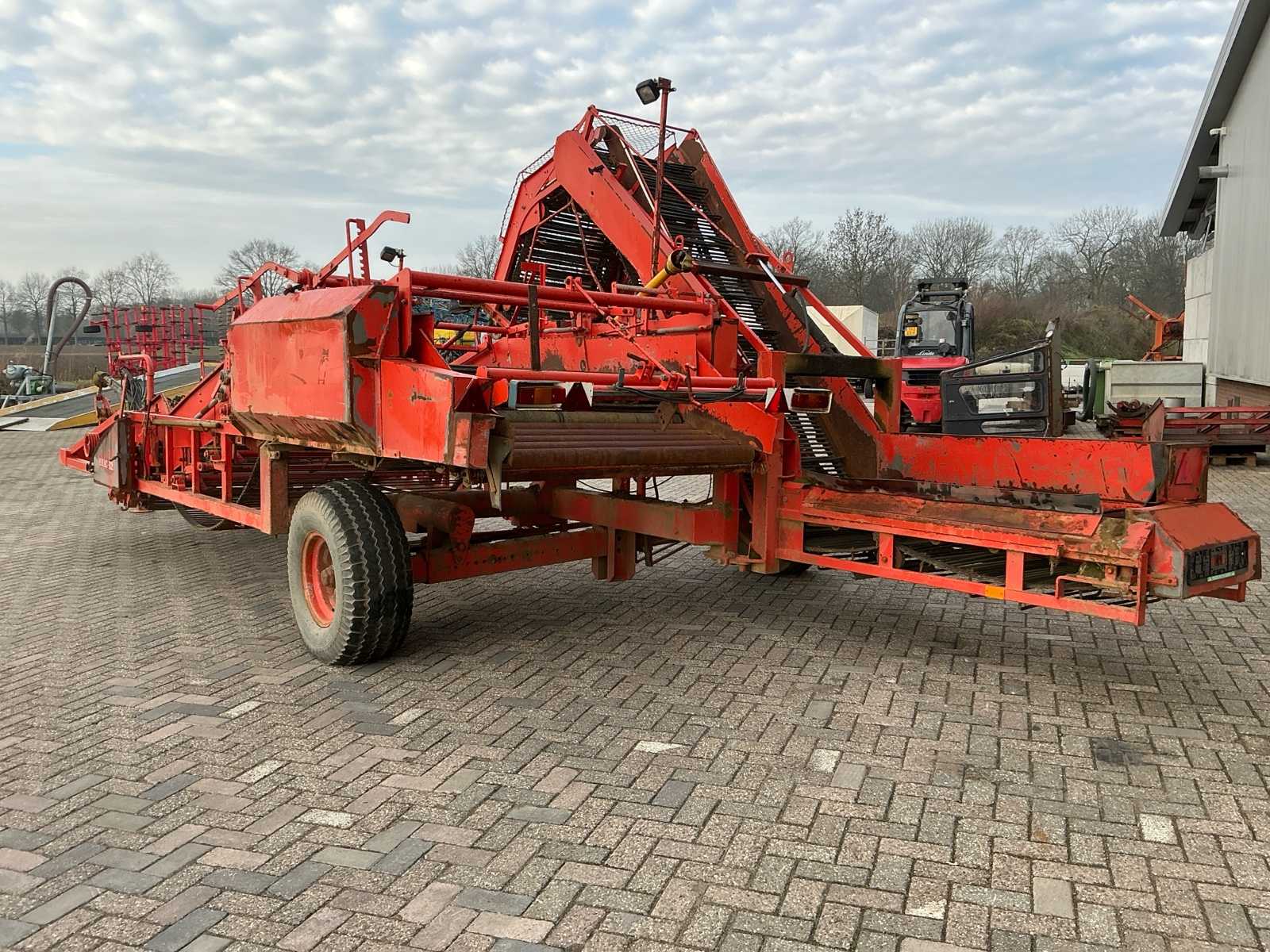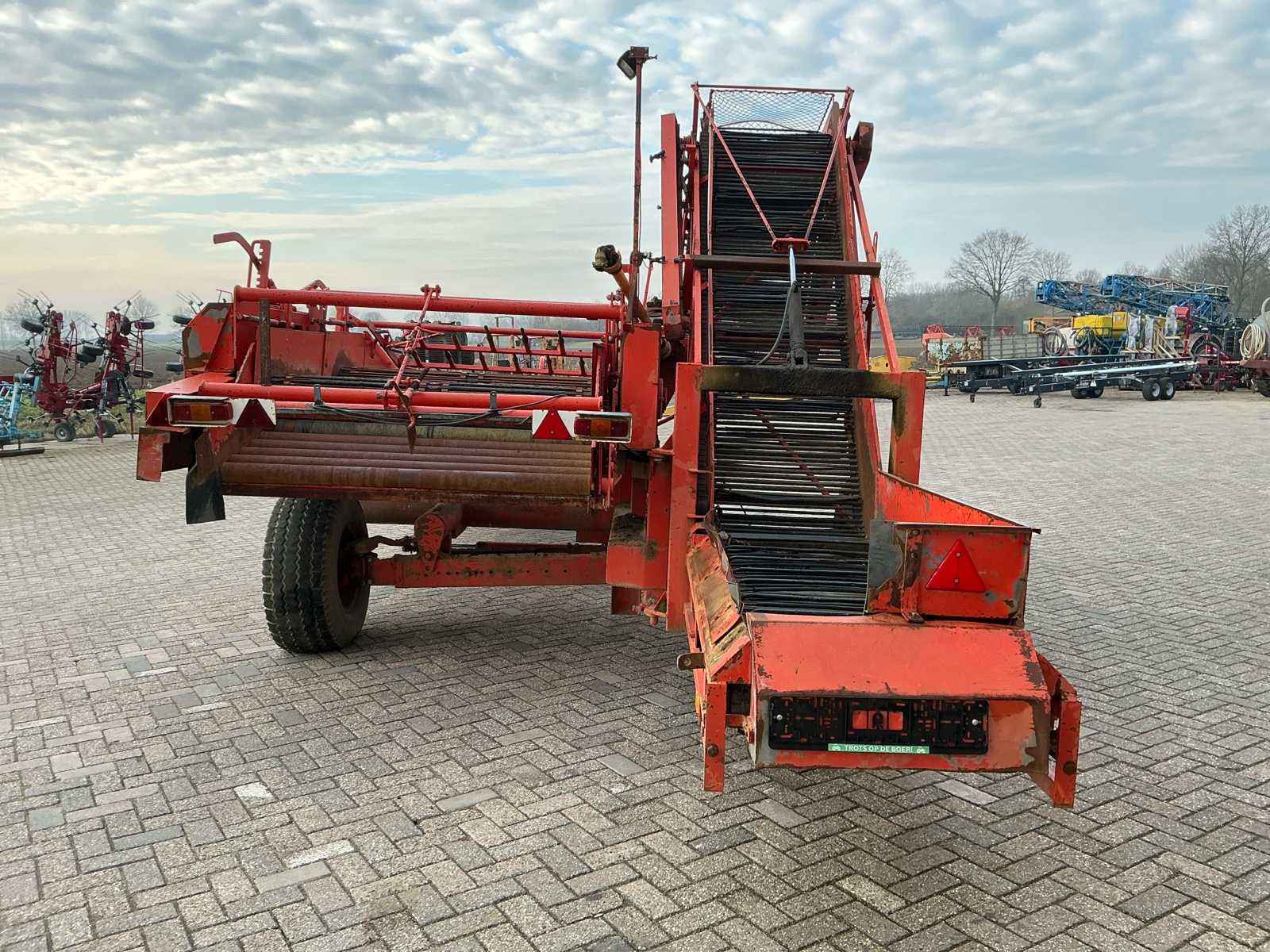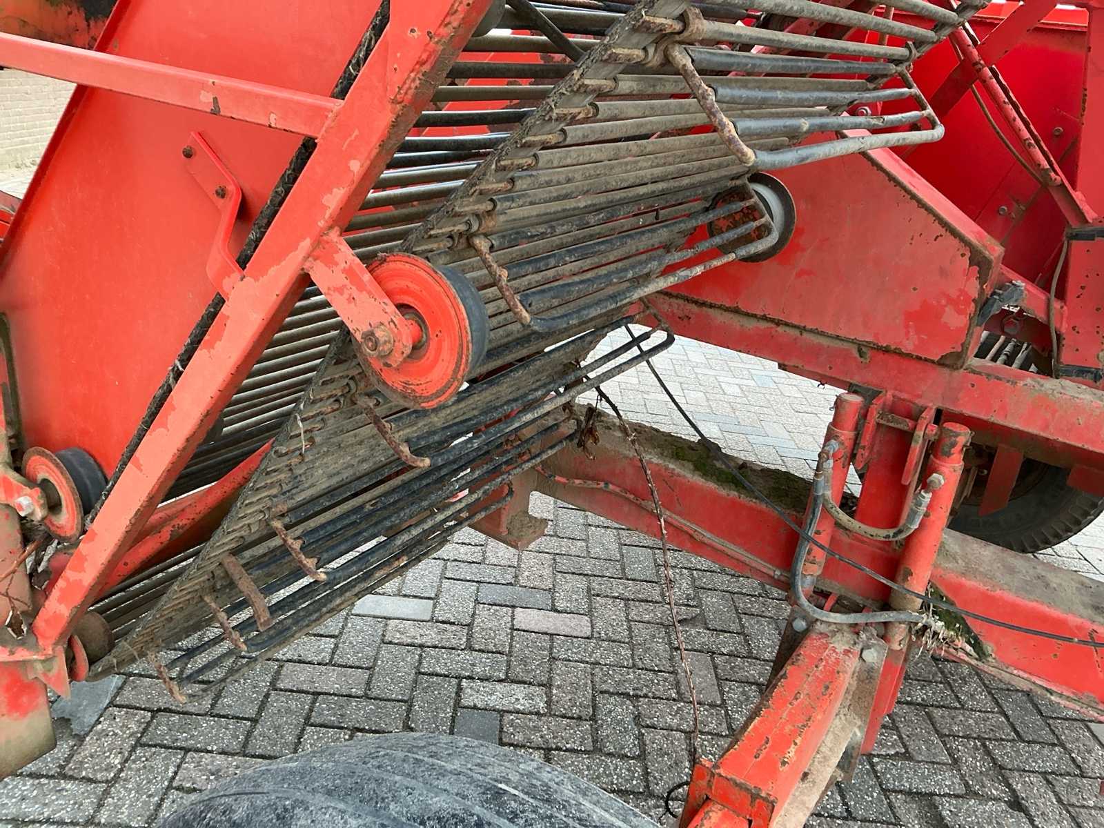 | Description | Equipped with: pitch size first mat 42mm, pitch width second mat 41.5mm, pitch width third mat 35mm, PTO, haulm roller, hydraulic connection, mechanical discharge ladder, hydraulically operated, without mount, mats with beaters, haulm hooks, work lighting |