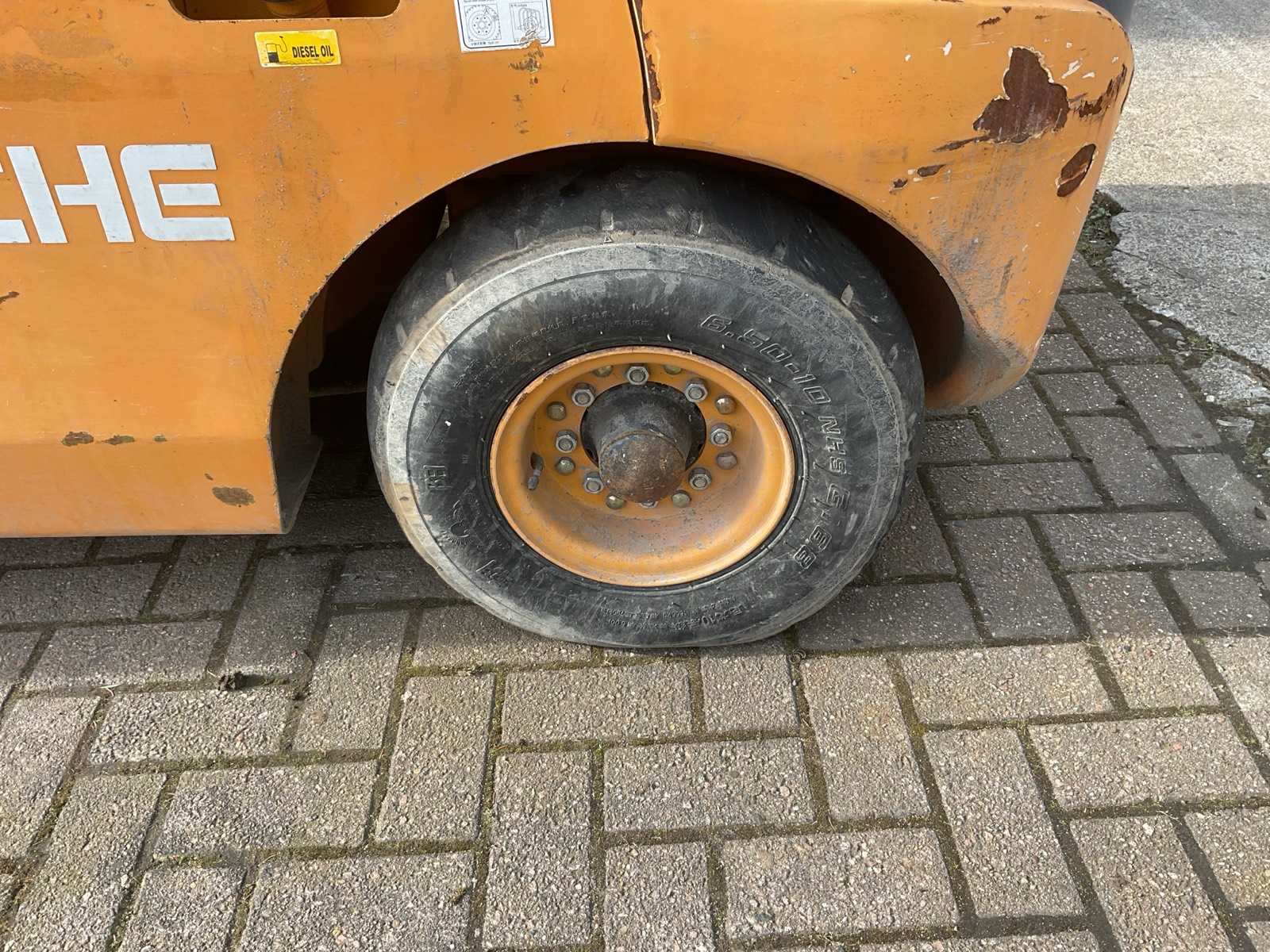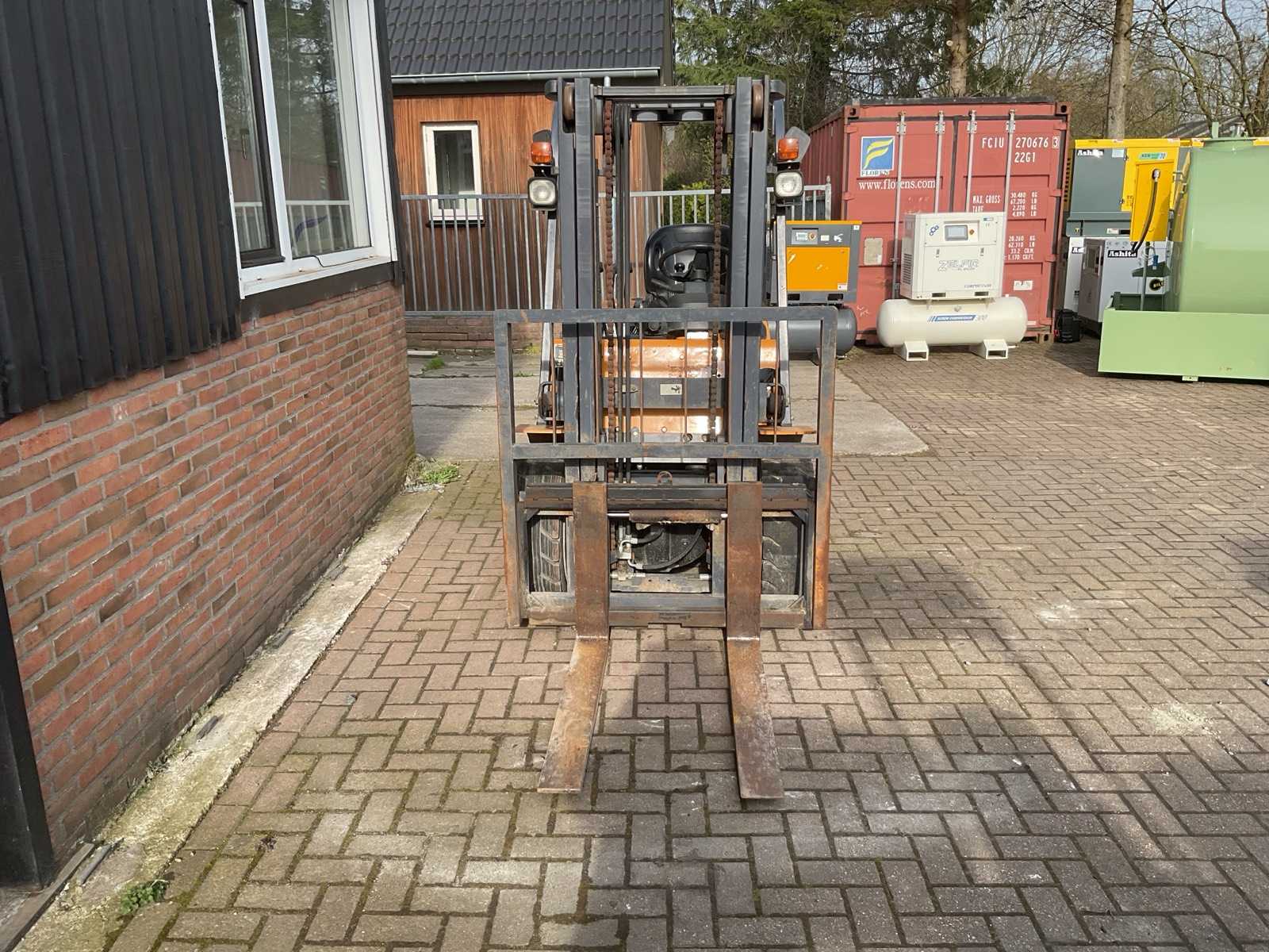 | Description | Equipped with Capacity: 3000 kg (3 tons); Fuel: Diesel; 4-cylinder diesel engine; Power: 50 HP ( 36 kW); Displacement: approx. 2.6–2.7 L; Torque converter with electric shuttle; Rated lifting capacity: 3000 kg; Load center: 500 mm; Length to forks: 3.9 m; Length to carriage: 2.82 m; Width: 1.25 m; Own weight: 4200 kg; |