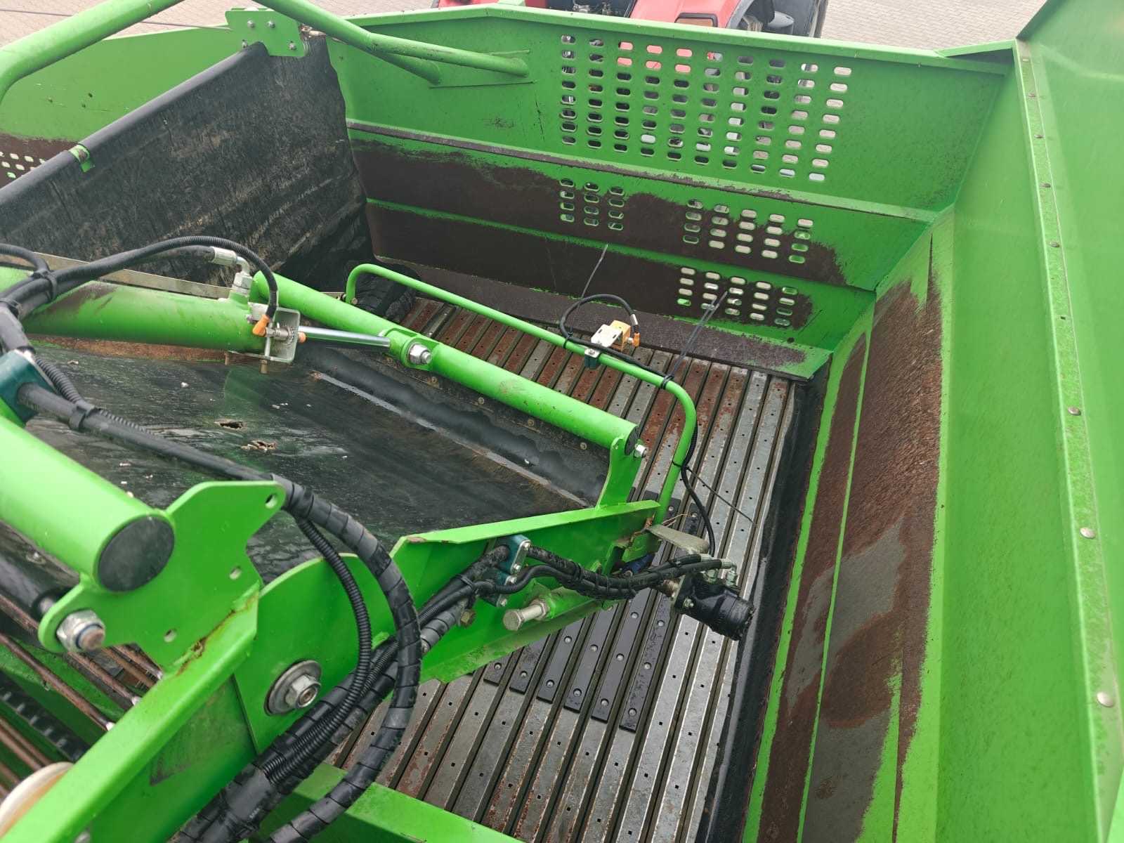 Equipped with: AVR Spirit 9200 trailed 2-row bunker offset harvester, year of construction 2016, +/- 650 Ha, without wheel drive, control screen with lever, camera screen, control on top of the harvester, hedgehog tires, multisep cleaner with steel counter rollers, K80 tow bar, hydraulic support leg, bunker with steel slats, double wheel left + right 1 wide wheel, tire sizes: 380/80R38 + 850/50-30.5, Belgian papers, dimensions (l x w x h): 11.7 x 3.30 x 4.00 meters, weight: 11,495 kg, bunker capacity: > 8 tons, row spacing: 75 – 90 cm, maximum unloading height: 4.20 meters., power requirement: 120 kW / 165 hp.