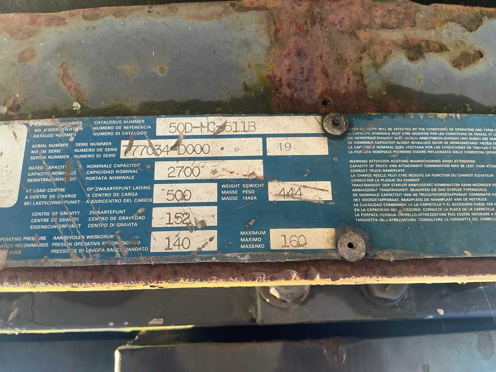 Spoon length: 120cm, capacity: 2700kg,