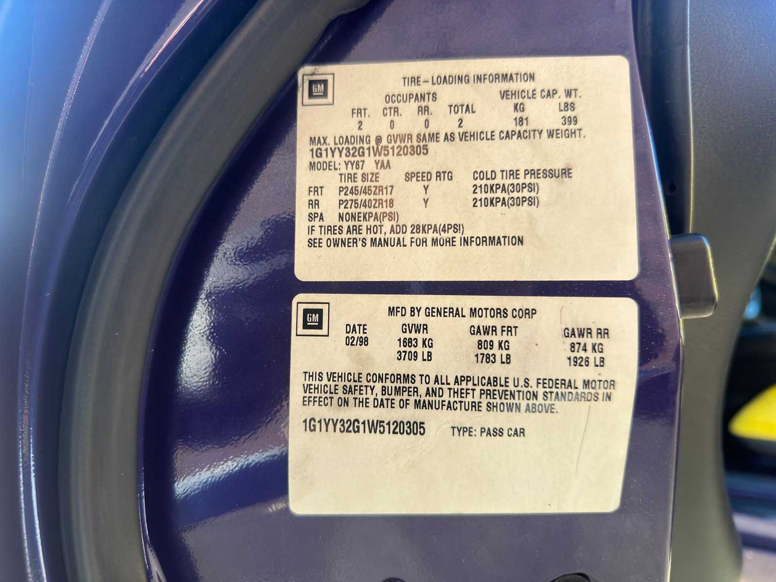 Chevrolet – Corvette C5 – 5.7 Convertible A – Pacecar indy 500 – 1065 from 1158 – 1998