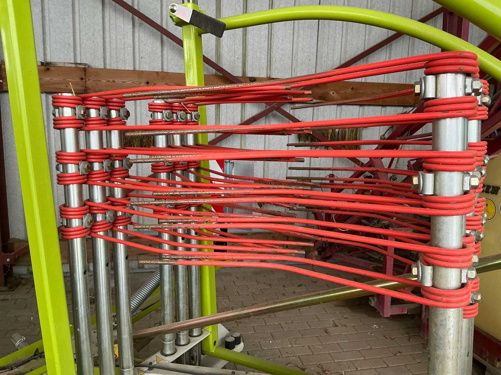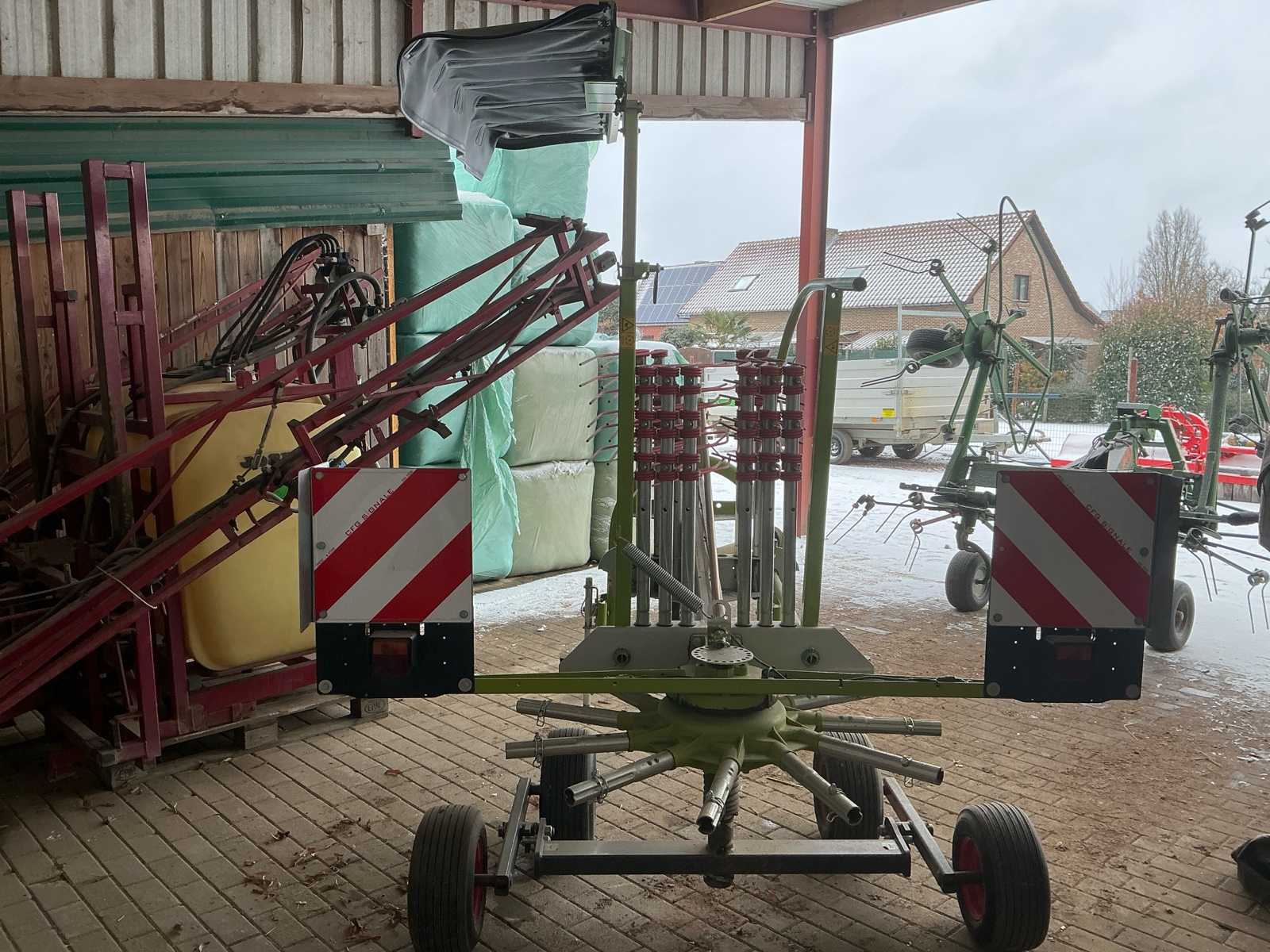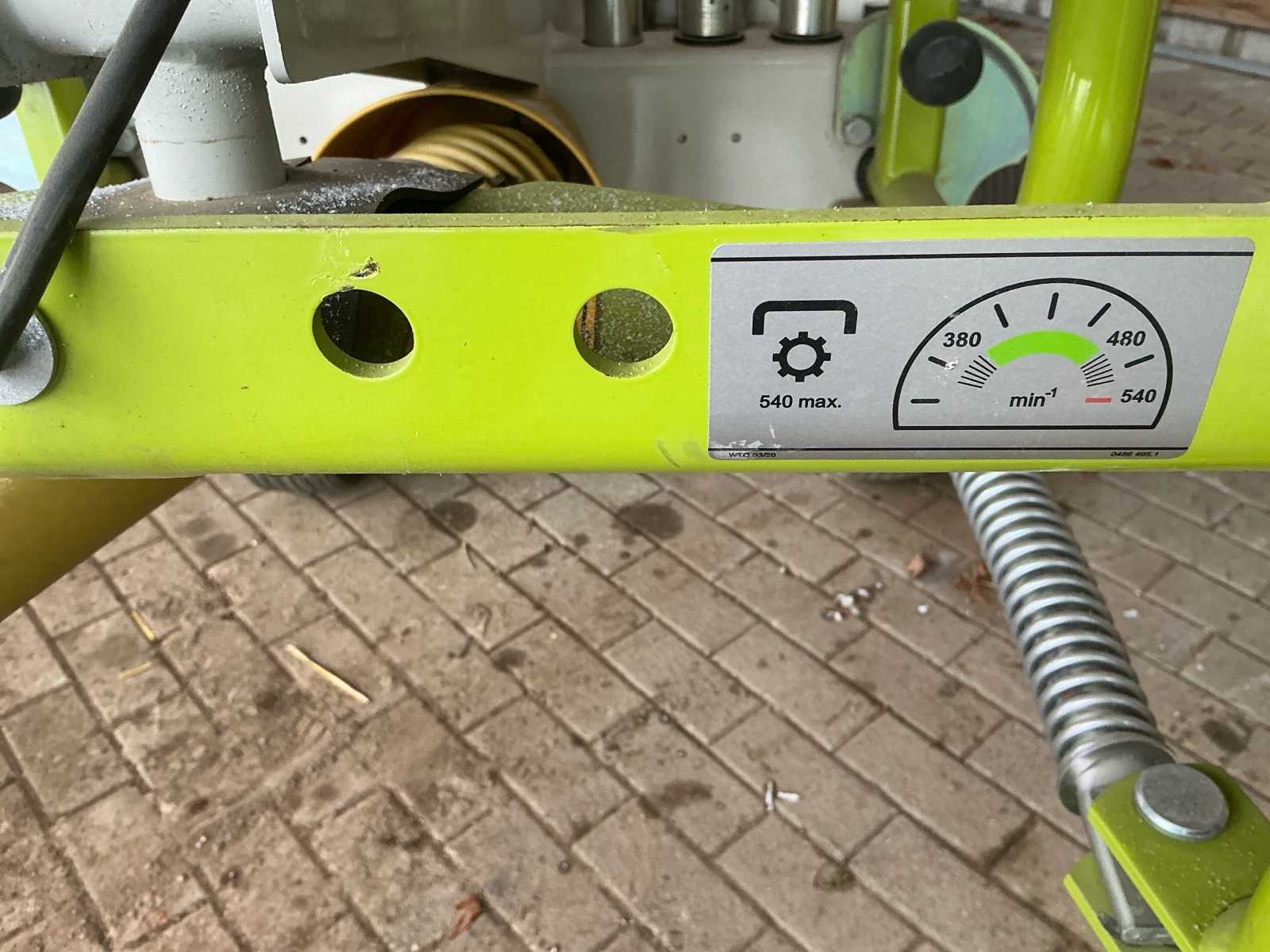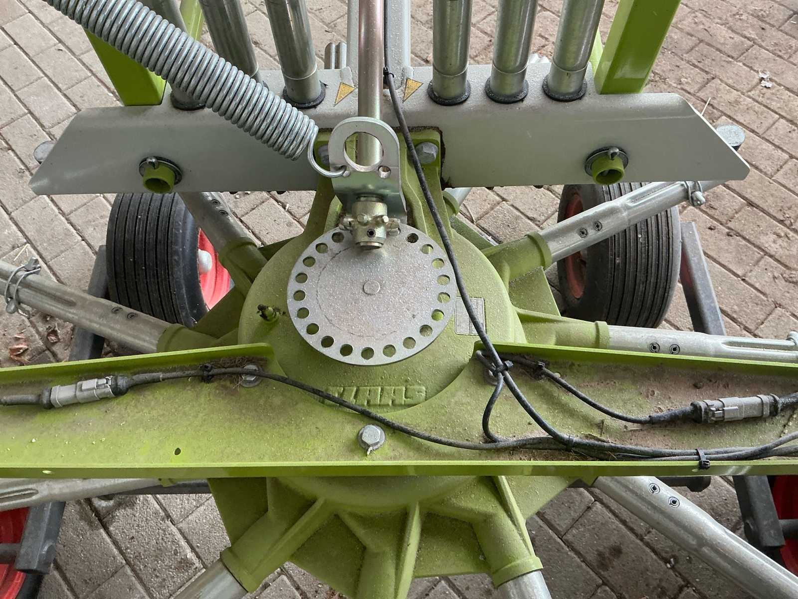 The rake is equipped with a stable chassis and good visibility of the work area. Due to its simple handling and solid construction, the Claas Liner 370 is suitable for both smaller and medium-sized farms. Equipped with lighting and with tandem axle.