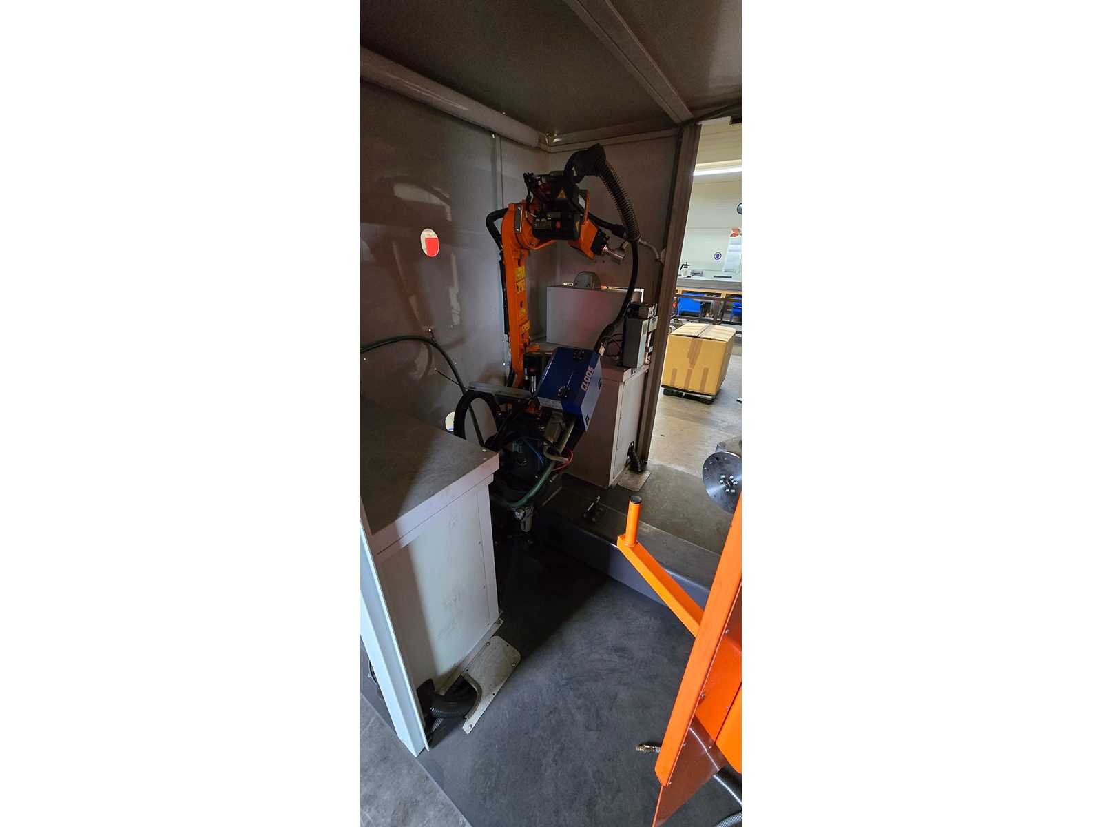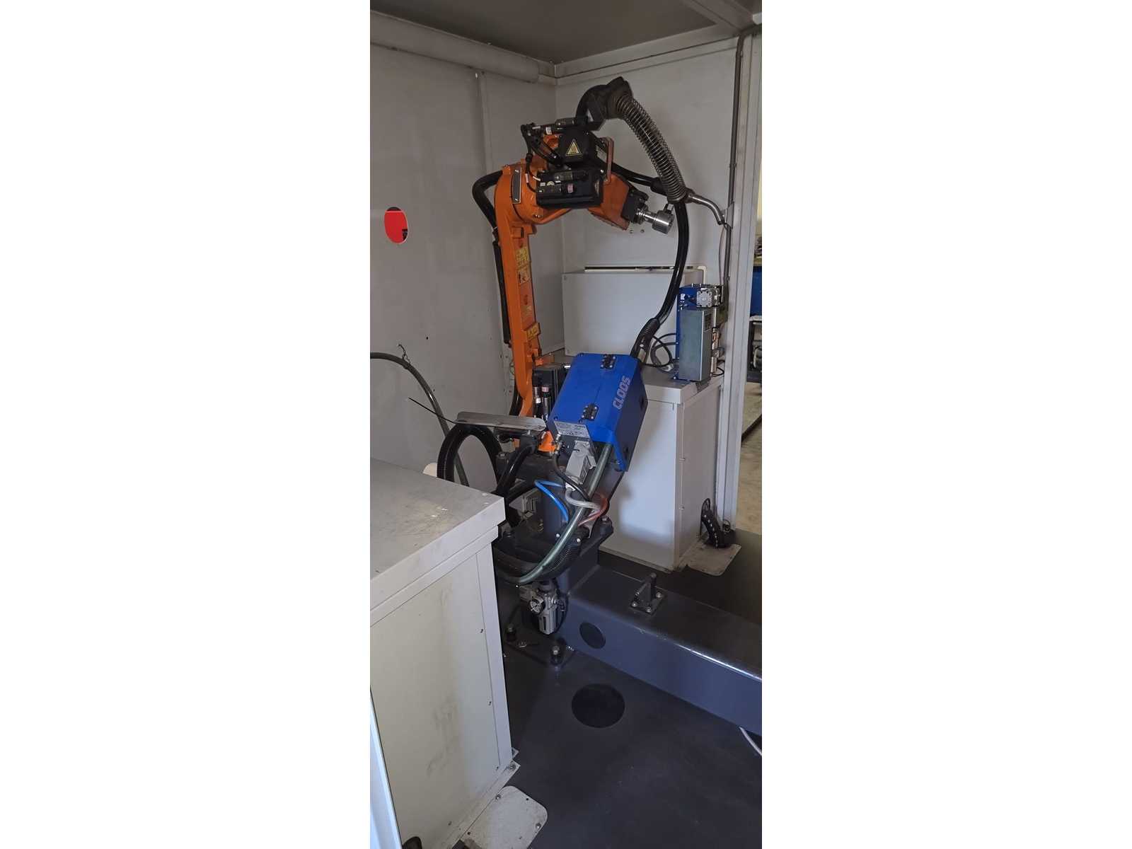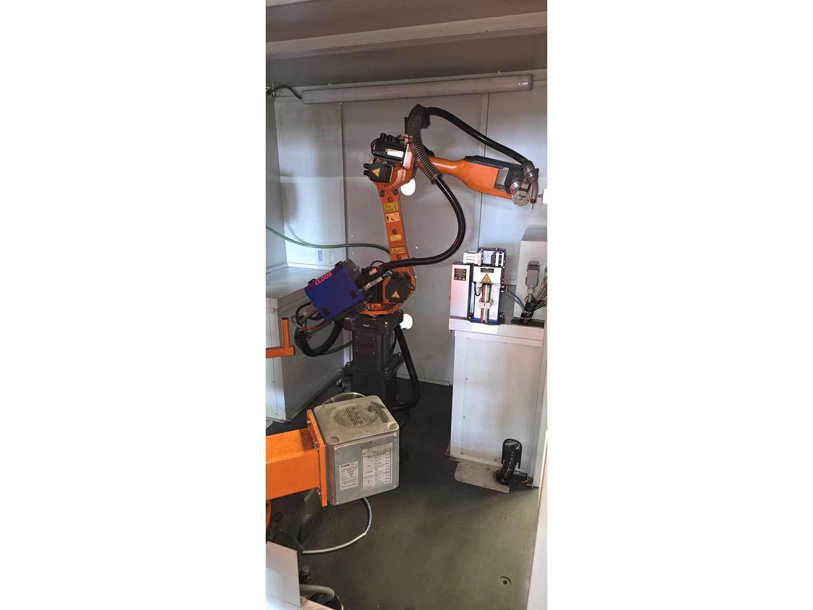 | Description | -Power consumption 12 kVA -Welding power source QINEO QINTRON 400 Pulse -Rotary table 1-axis integrated rotary table with clamping plate -Robotic arm 6-axis industrial robot (CLOOS-branded, probably KUKA base) – Safety enclosure Fully encased with safety window & suction nozzle -Teach Panel handheld control unit with CLOOS UI, clearly visible -Exterior trim Very good condition, minimal paint abrasion visible -Interior Clean, no visible abrasion or weld spatter -Robot arm Visually almost as good as new, without visible damage -QINTRON 400 Pulse welding machine (modern pulsed arc technology) – in good condition – Control unit Teach Panel intact & connected, no error messages visible -Turntable Mechanically stable, without visible wear |