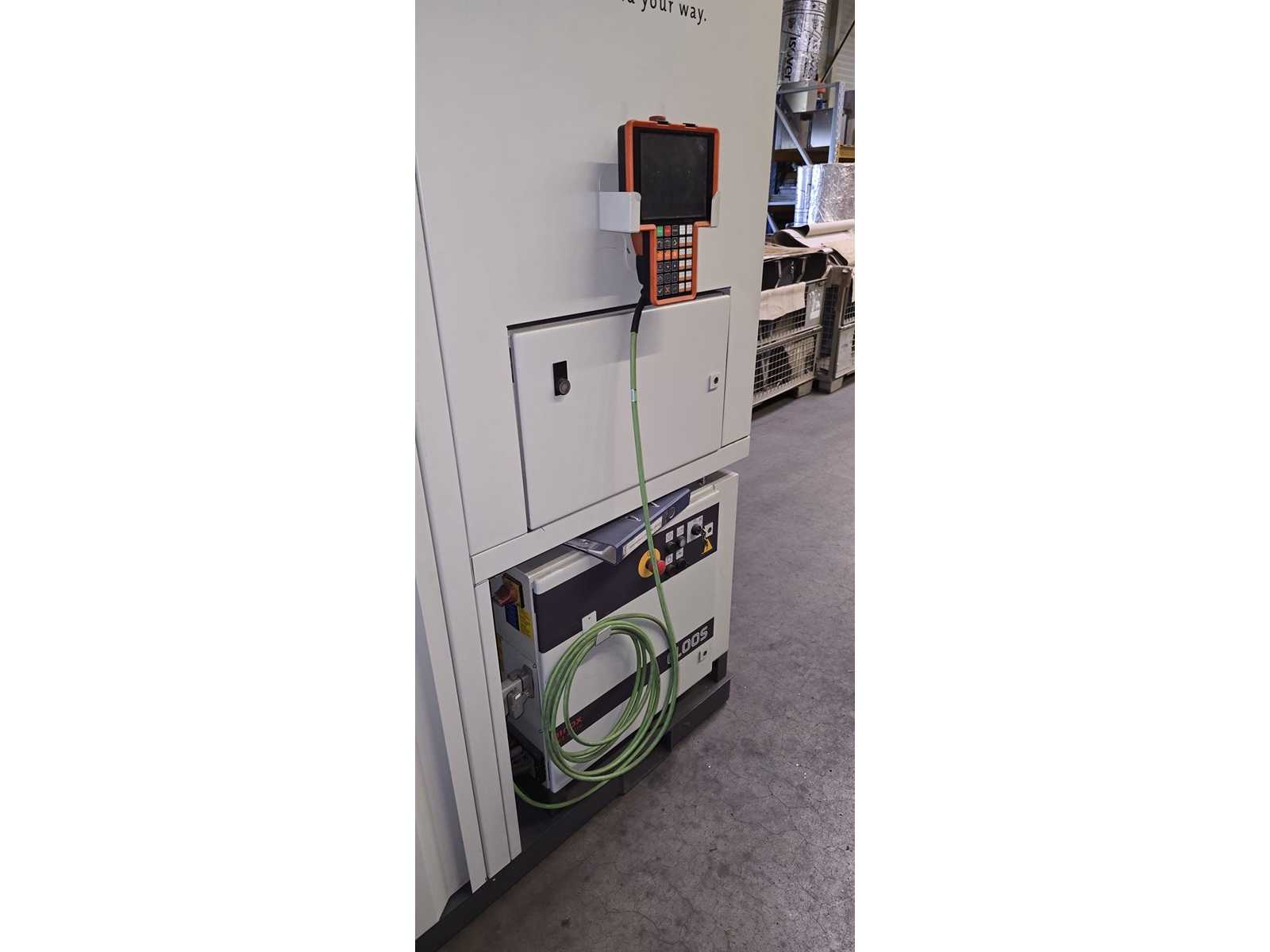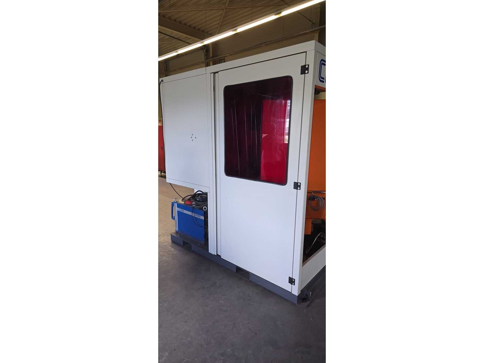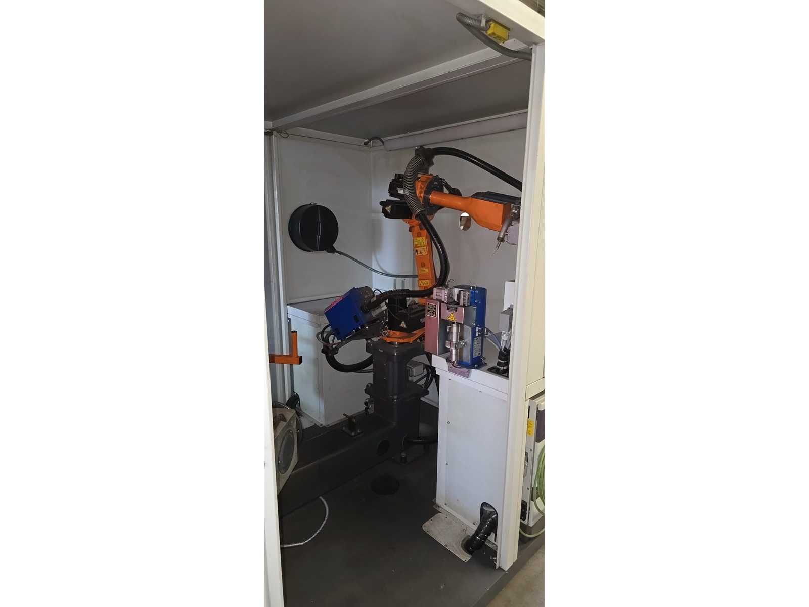 | Description | -Power consumption 12 kVA -Welding power source QINEO QINTRON 400 Pulse -Rotary table 1-axis integrated rotary table with clamping plate -Robotic arm 6-axis industrial robot (CLOOS-branded, probably KUKA base) – Safety enclosure Fully encased with safety window & suction nozzle -Teach Panel handheld control unit with CLOOS UI, clearly visible -Exterior trim Very good condition, minimal paint abrasion visible -Interior Clean, no visible abrasion or weld spatter -Robot arm Visually almost as good as new, without visible damage -QINTRON 400 Pulse welding machine (modern pulsed arc technology) – in good condition – Control unit Teach Panel intact & connected, no error messages visible -Turntable Mechanically stable, without visible wear |