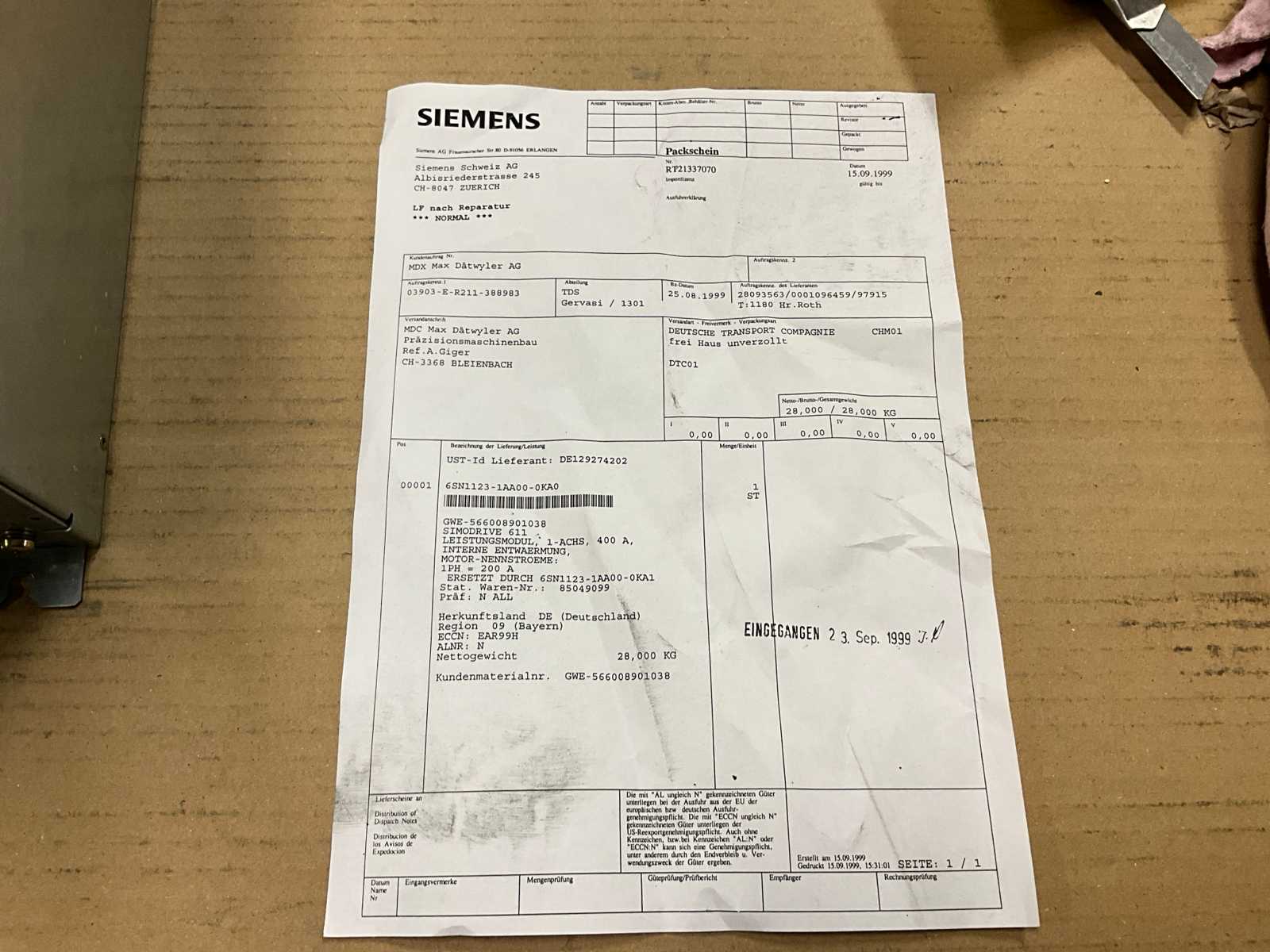 CNC Universal Machining Centers – Siemens – Simodrive 6SN1123-1AA00-0KA0