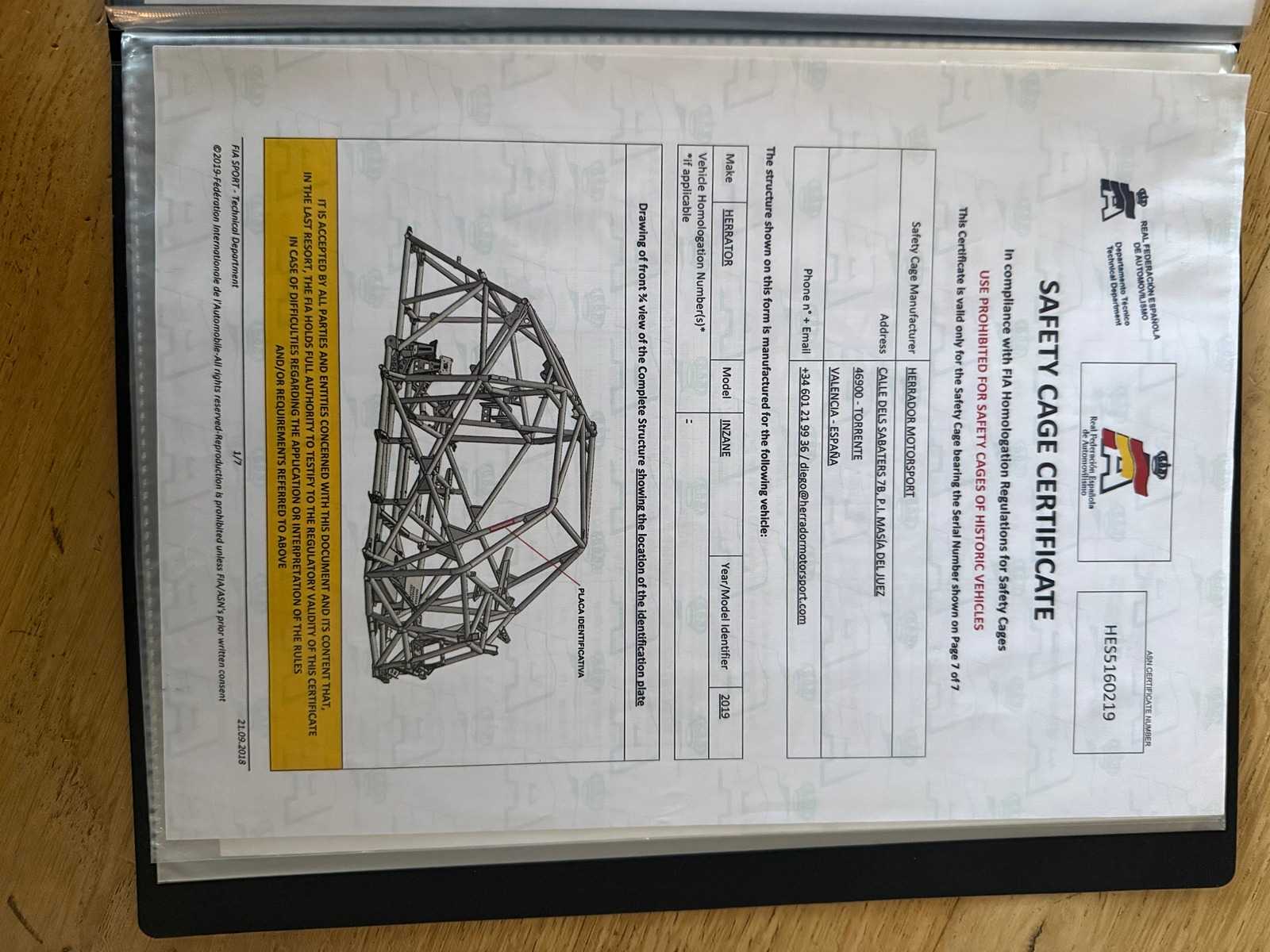 | Description | FIA Passport included no road registration |