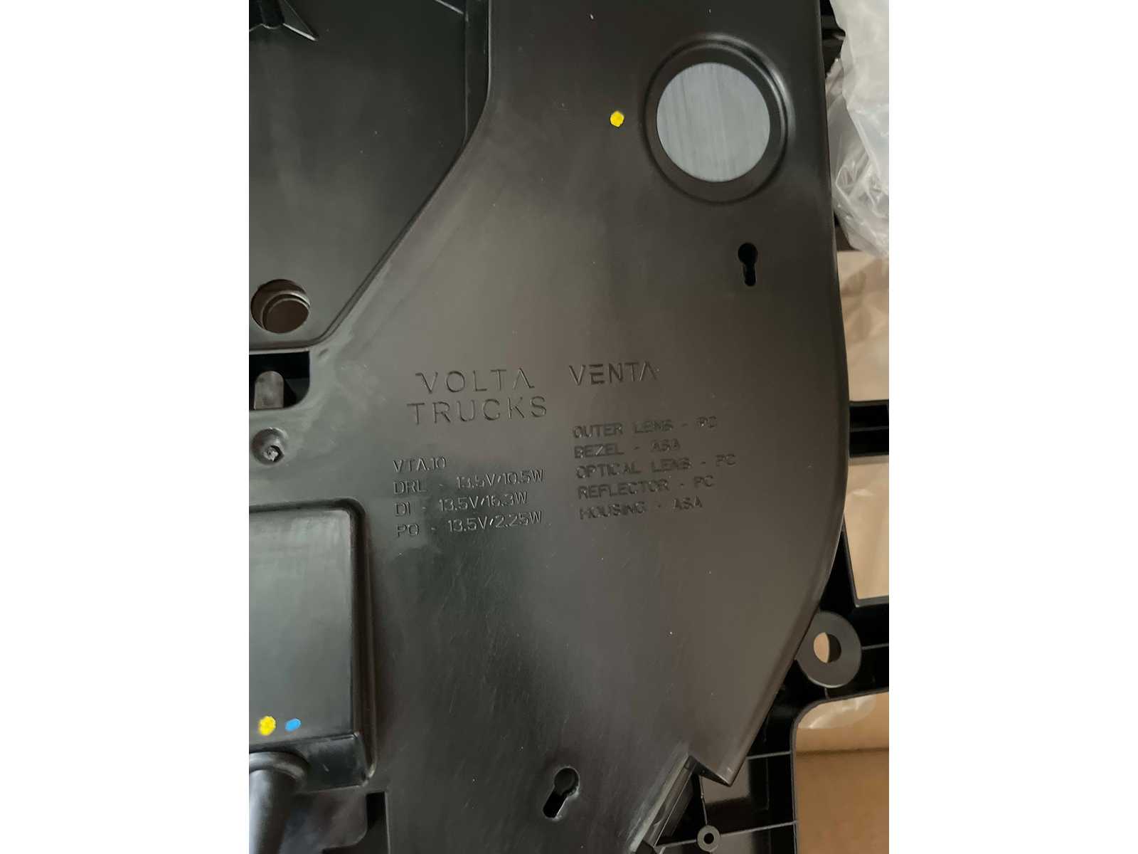 Original daytime running lights from Venta, suitable for Volta Trucks. The lamps are intended for use as daytime running lights (DRL) as well as additional driving light functions.