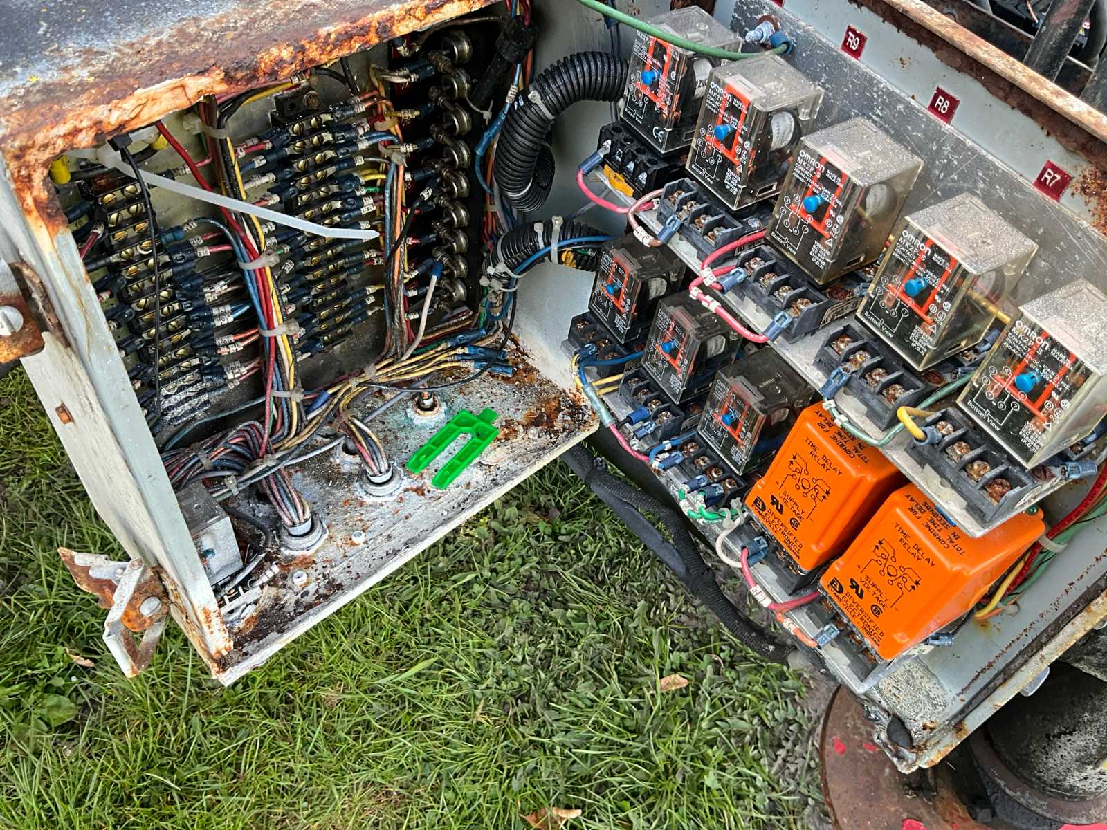 Equipped with scissor lift, twistlock frame, hydraulic outriggers, operation unknown