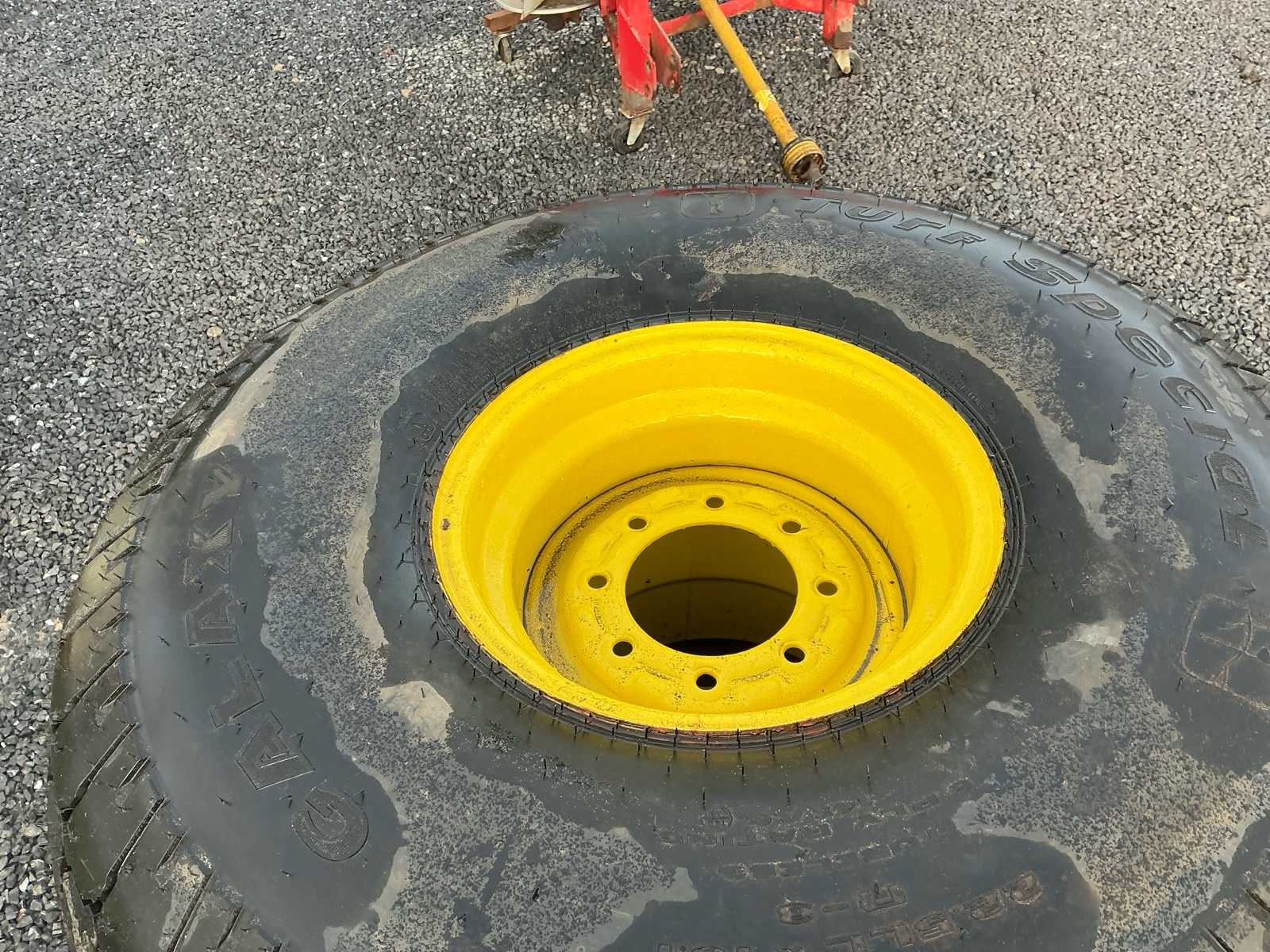 | Description | On rim suitable for John Deere, 15 cm hub width – 8 holes. With Galaxy Turf Special 22.5LL x 16.1 tires. |