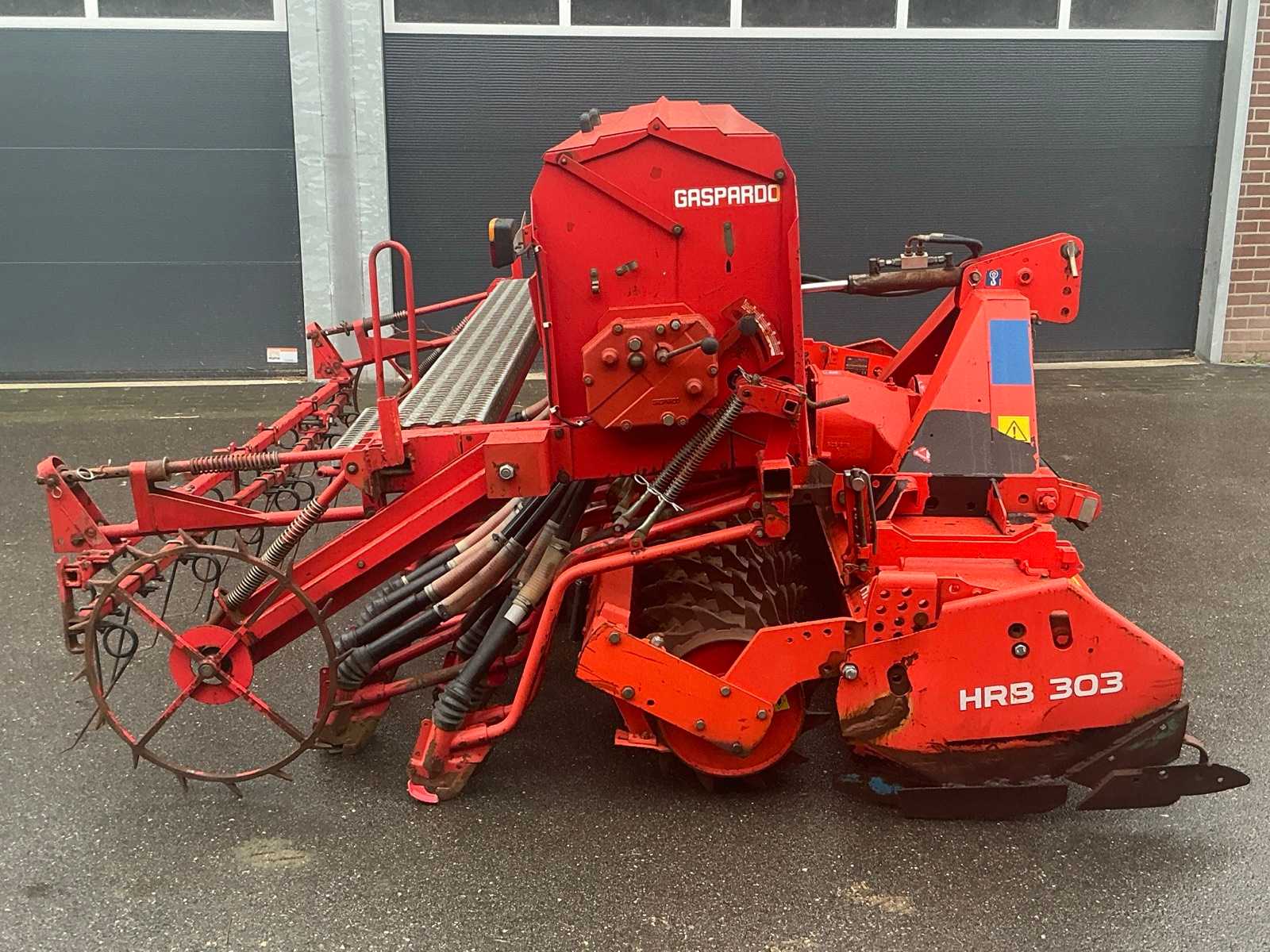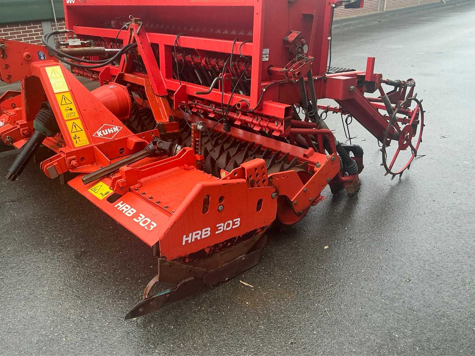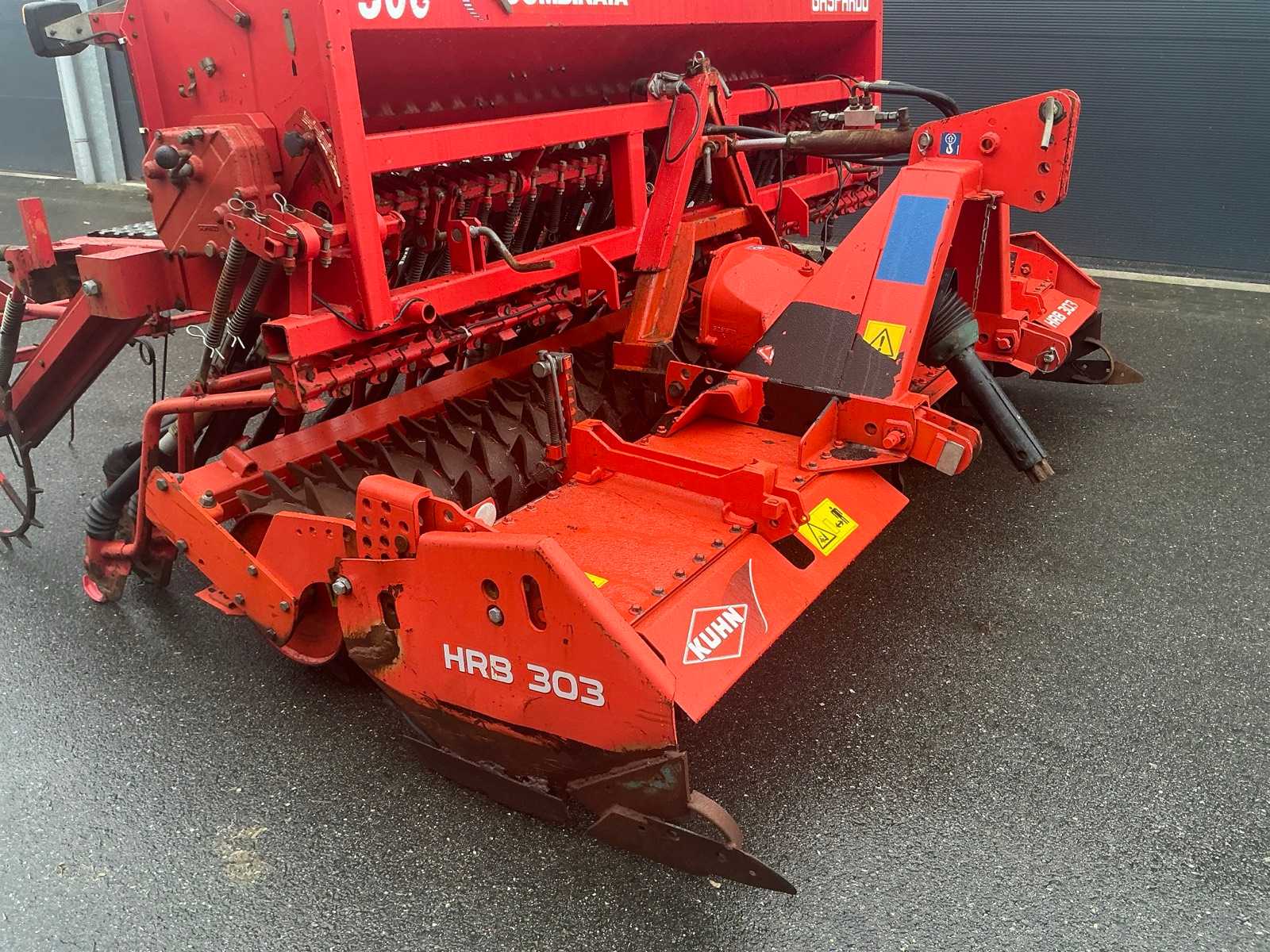 Consisting of 2012 Kuhn HRB 303D power harrow and 1992 Agip Gasparado Combinata 300 seeder. Hydraulic seeder lift. Equipped with lighting. 29 spouts.