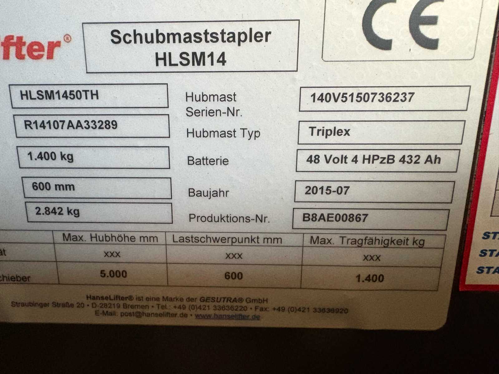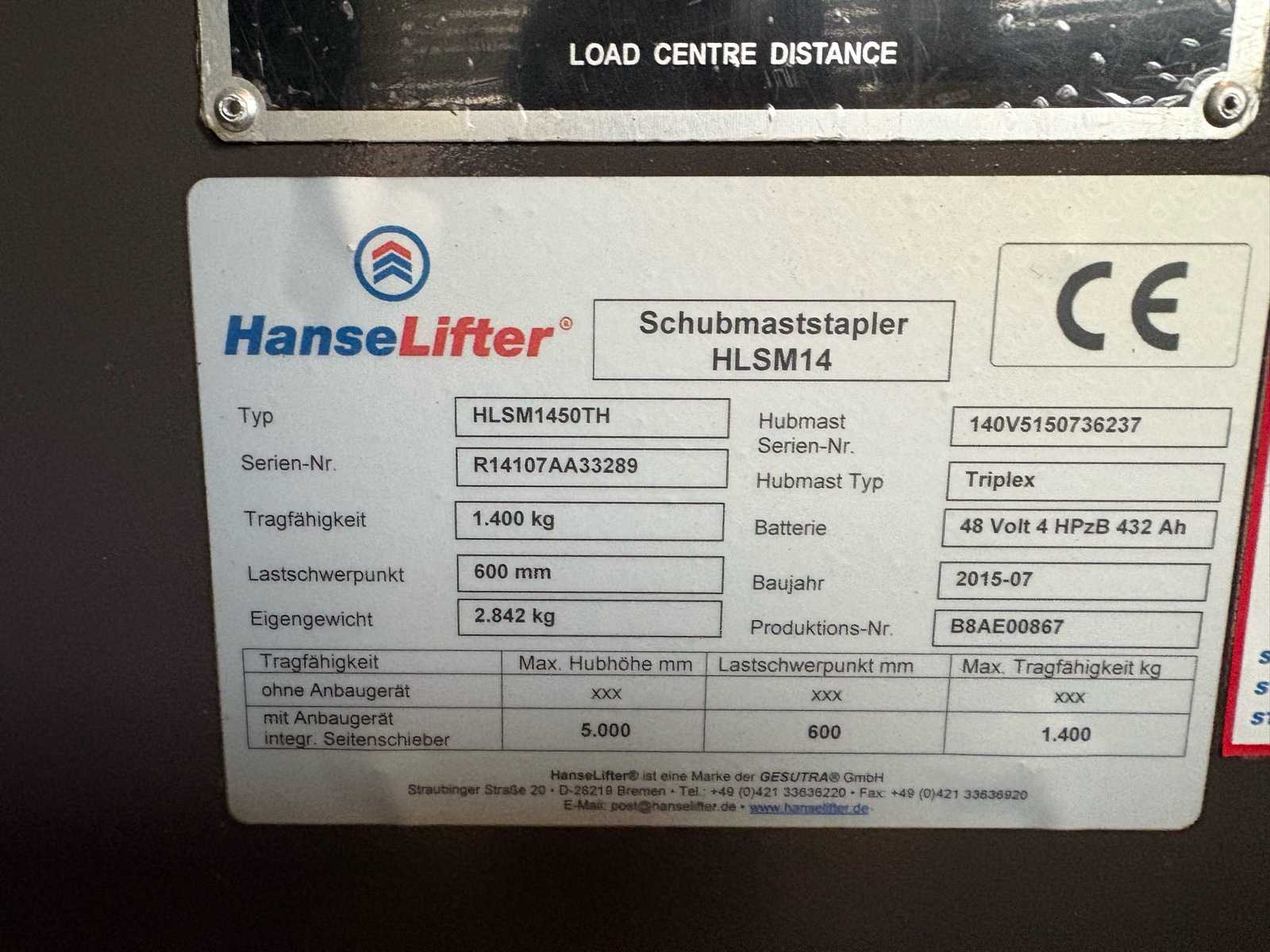 HANSE LIFTER HLSM1450TH Forklift Trucks
