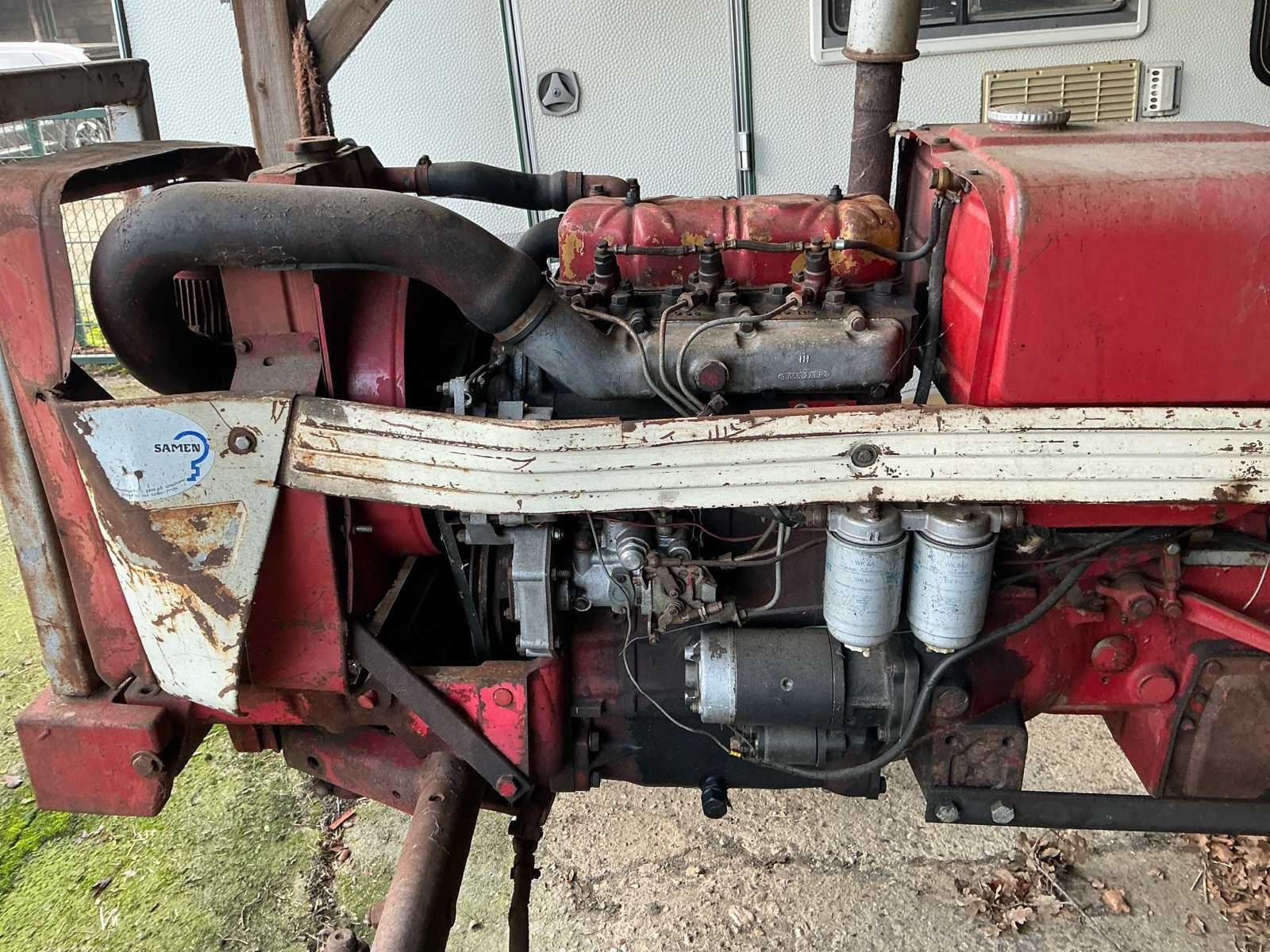 Consists of: engine: D-155, 3-cylinder, direct injection diesel, approx. 40 hp (29.8 kW) at 1900 rpm, water-cooled, engine running, no battery, puller for parts, wheelbase 192 cm, length 308 cm, width 162 cm. height 154 cm, weight 2015 kg, no license plate.