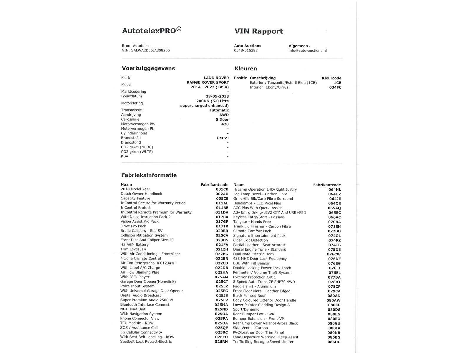 | Description | Please note: this car currently has a Dutch registration, but will be delivered with export documents when sold. If you have any questions, please email info@auto-auctions.nl Chassis number/fin: SALWA2BE6JA808255 |