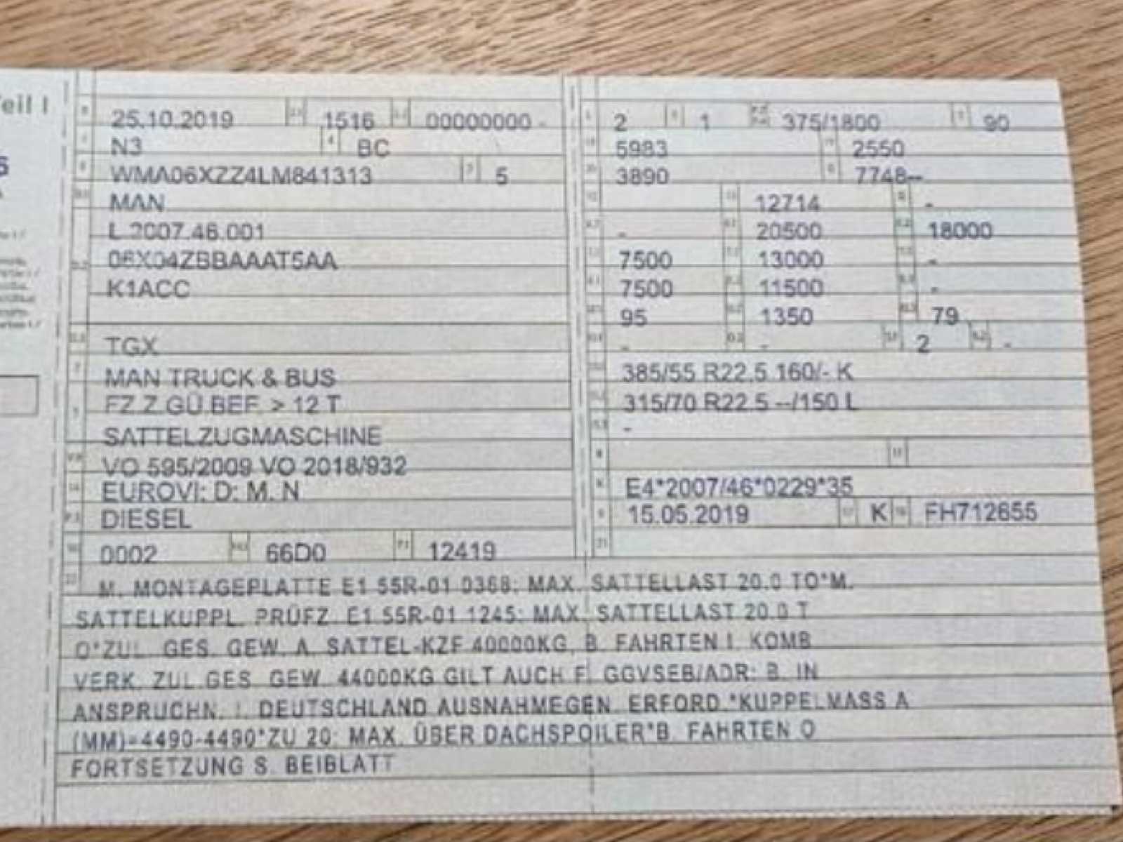 | Description | MAN TGX 18.510 4×2 BLS – Special model “Individual” – TOP CONDITION Year of manufacture: 05/2019 | Mileage: 650,000 km | Power: 510 hp (375 kW) | EURO VI D Technology & Hydraulics Tanks & Tires |