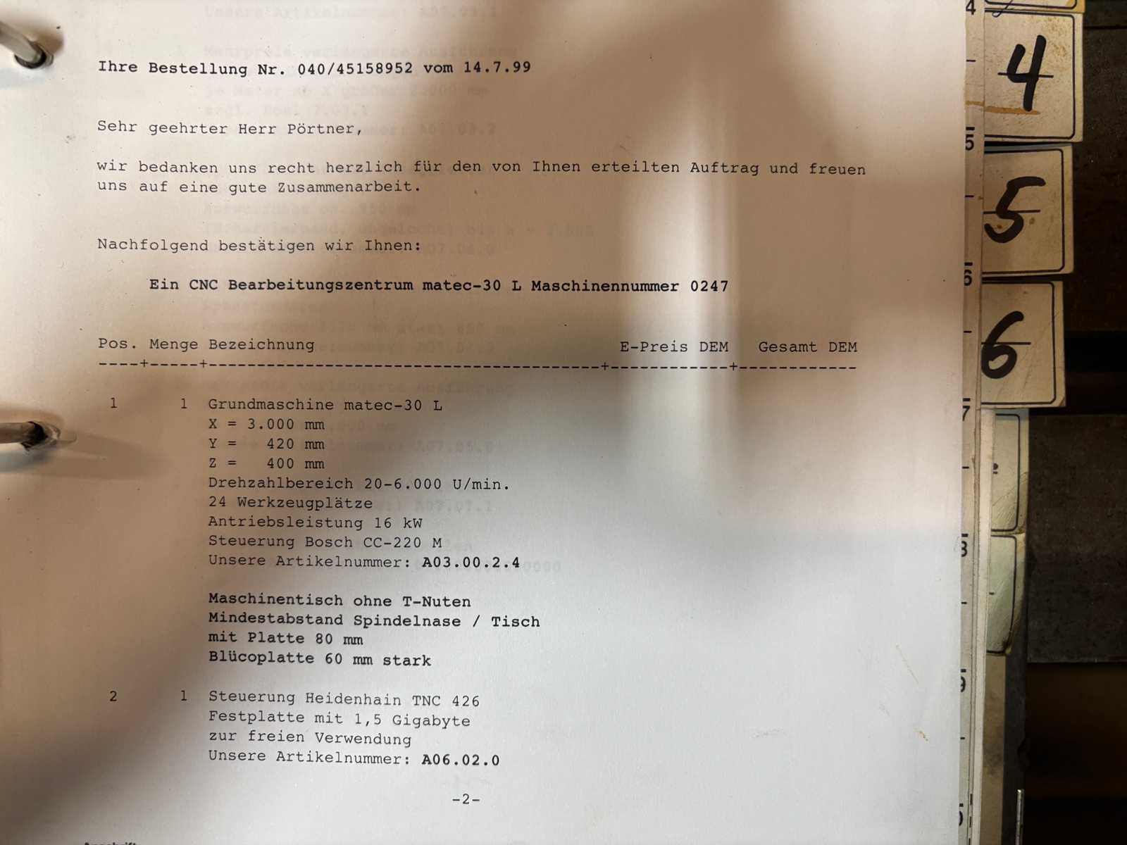 MATEC 30 L CNC Vertical Machining Center -1999