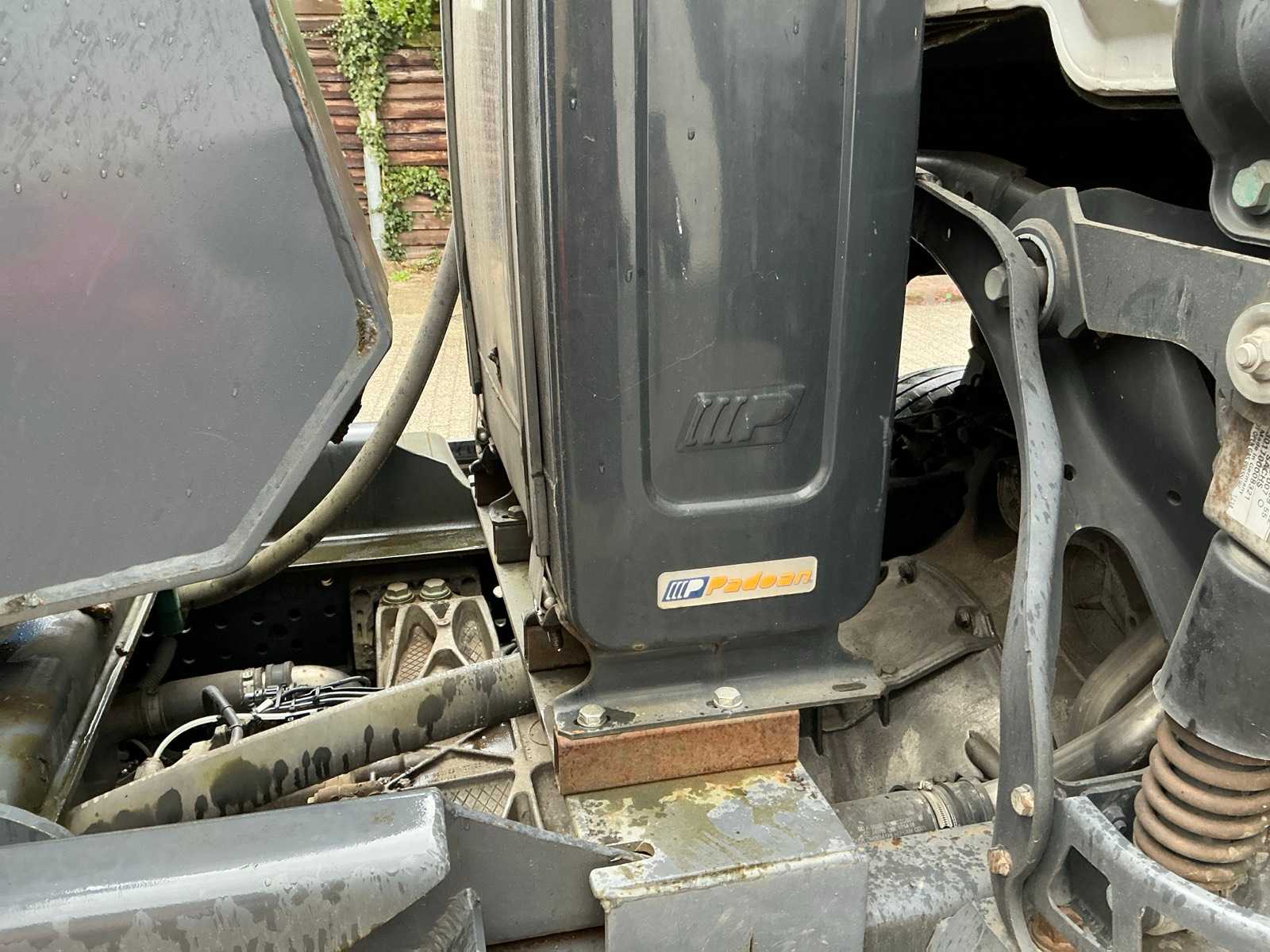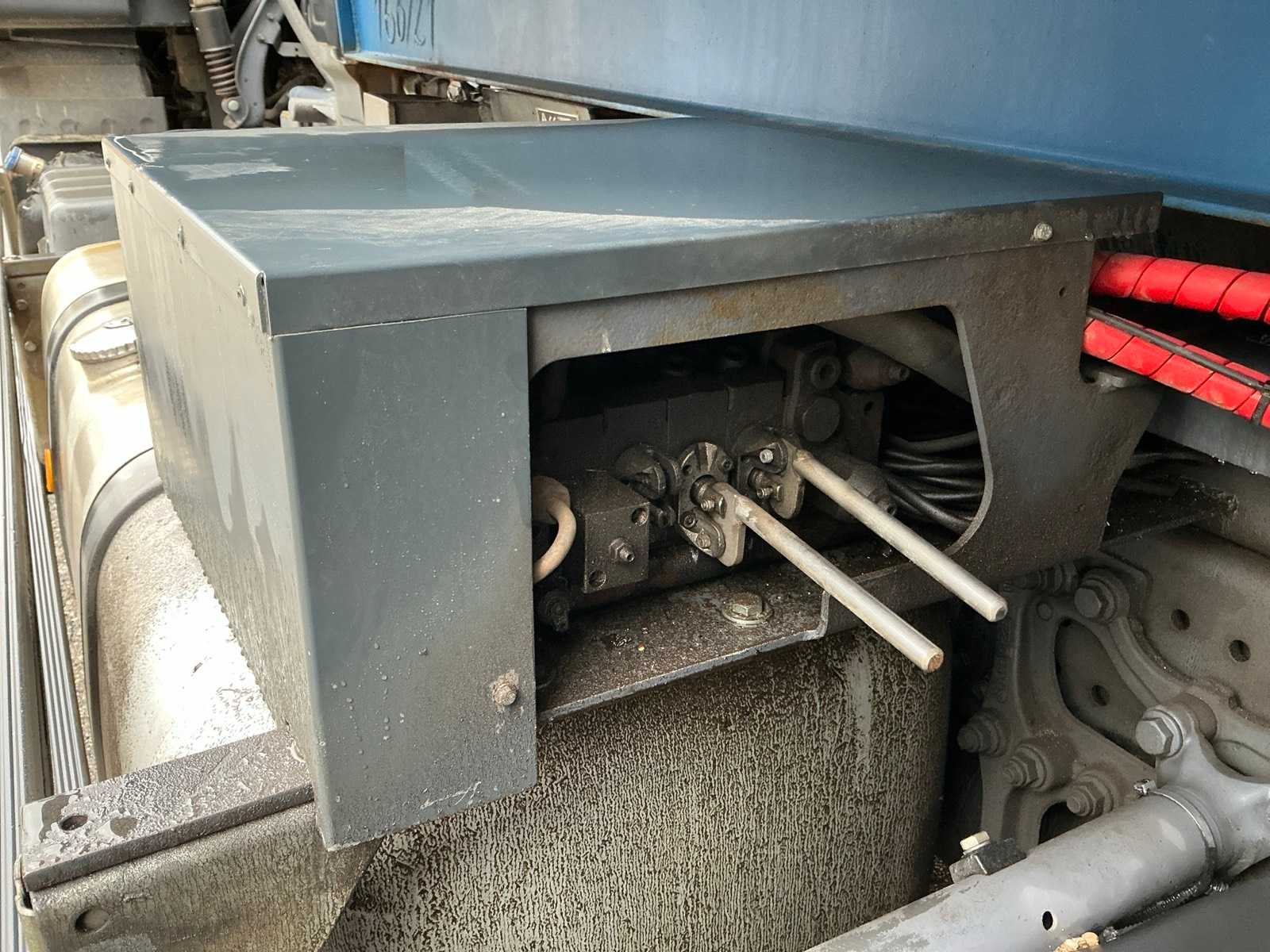 Without overlying trough/scaffolding, only vehicle without registration/license plate