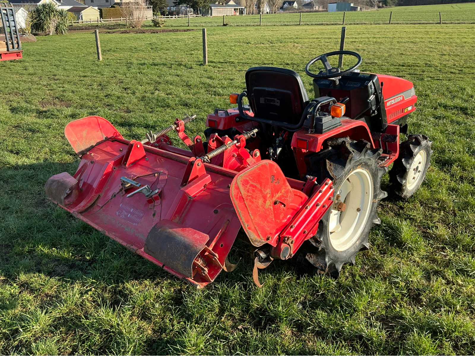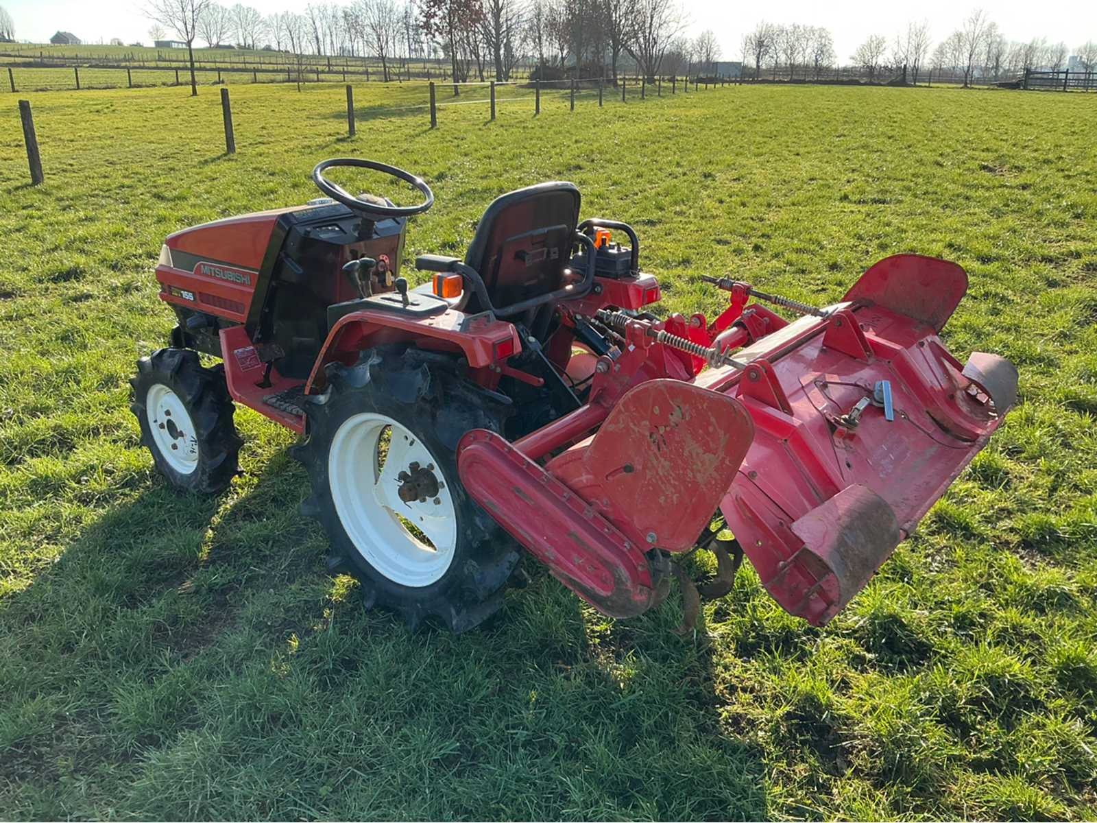 | Description | Mitsubishi MT155 18hp mini tractor – with cultivator Robust and compact Mitsubishi MT155 mini tractor, suitable for various activities in agriculture and horticulture. This tractor is known for its reliable technology and easy operation. The tractor is equipped with a diesel engine and a manual transmission. A cultivator/power harrow is mounted at the rear, ideal for tilling soil in gardens, orchards and smaller plots. Thanks to its compact size, the machine is very manoeuvrable and can be used in limited spaces. |