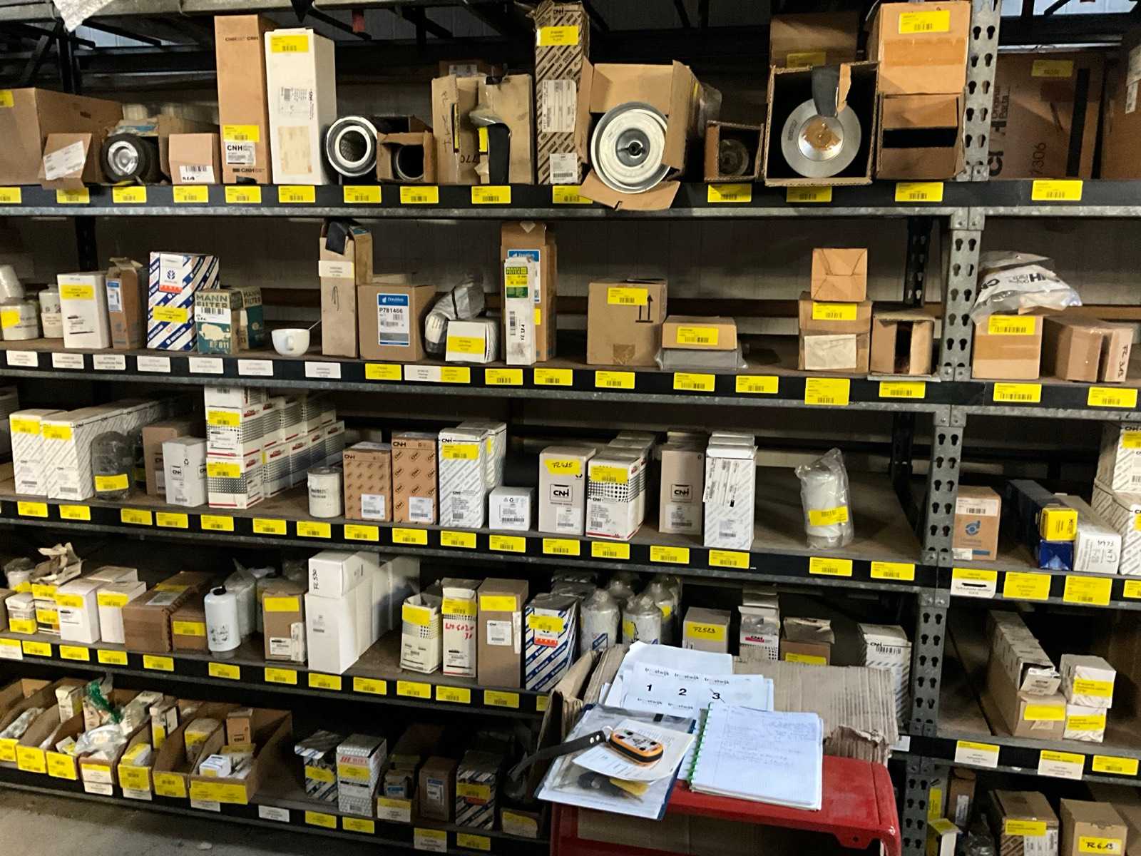 Consisting of 8-meter long and 2 meter high rack content with 15 sections including oil filters, hydraulic filters, air filters and fuel filters, EXCEPT V-BELTS AND EVERYTHING ON RACK IS NOT INCLUDED!!