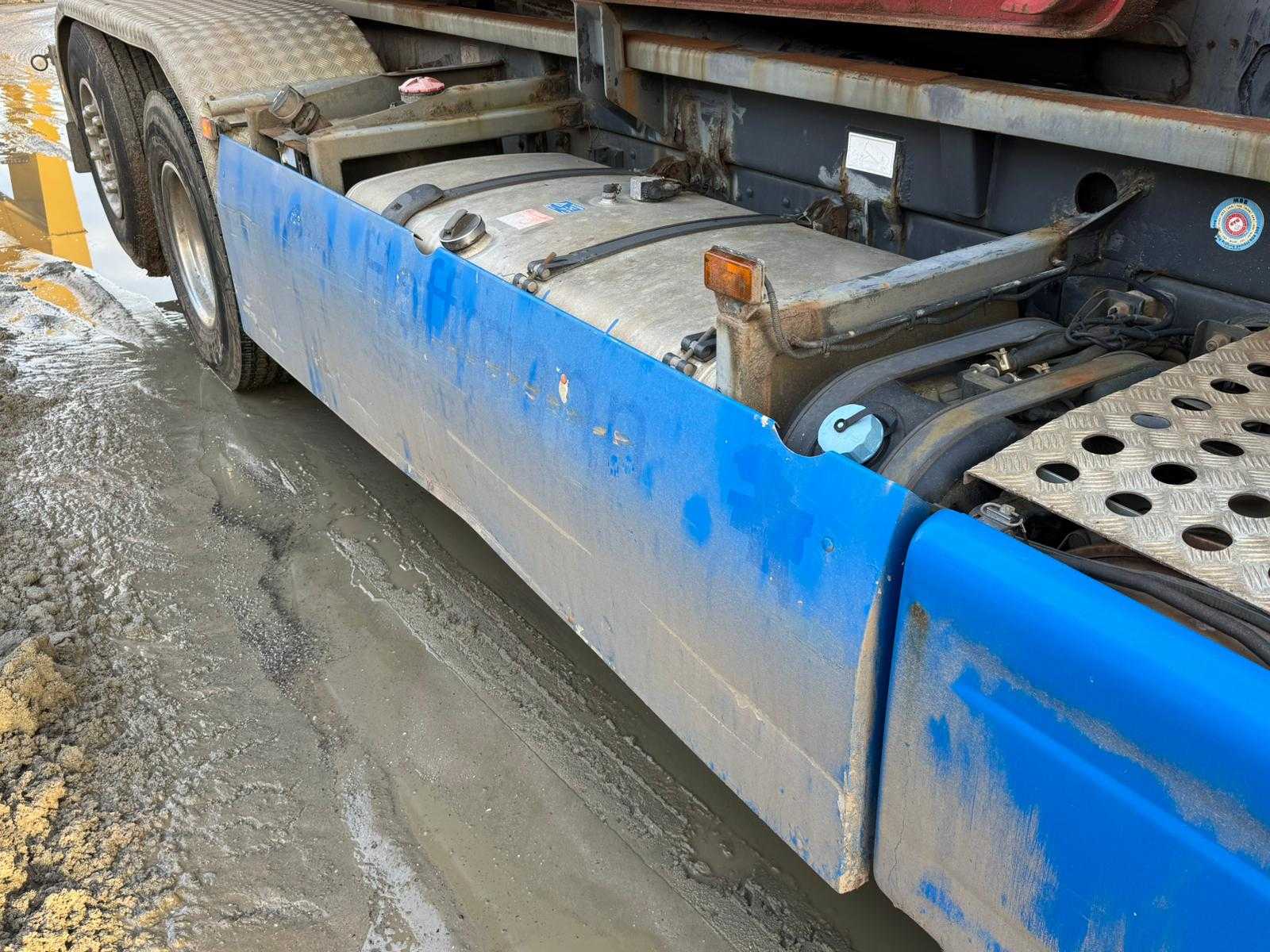 Scania R500 V8 Hook; start, drives, brakes; Retarder; Hooklift 20T Gergen; Last axle Lift axle & Steering axle; Air suspension; extendable bumper; trap; PTO; Equipped with MOT; car sometimes has emission failure when the engine is cold; Container not included