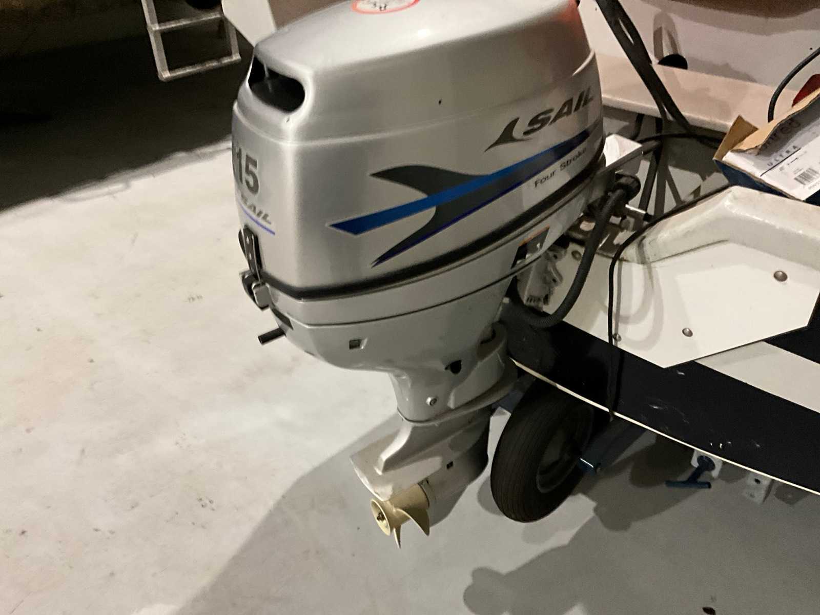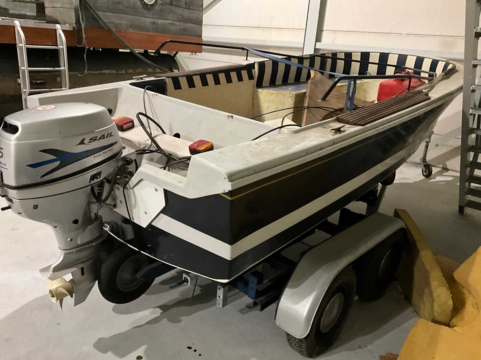 Sail 15 outboard motor, bench seat front, including boat trailer 5.9×2.1m with 7-pin plug and hand winch