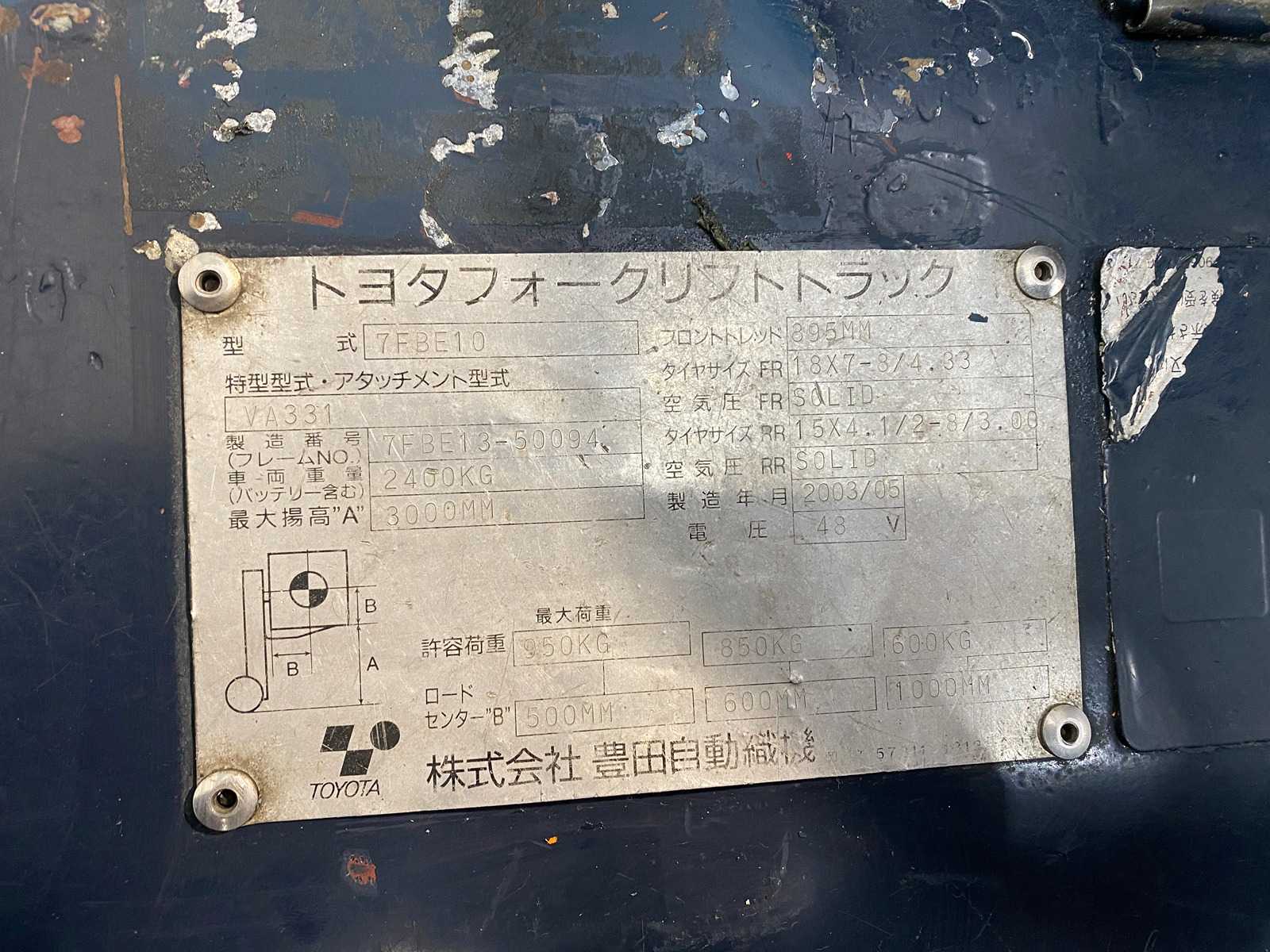 Toyota – 2003 – 7FBE10 – Forklift truck