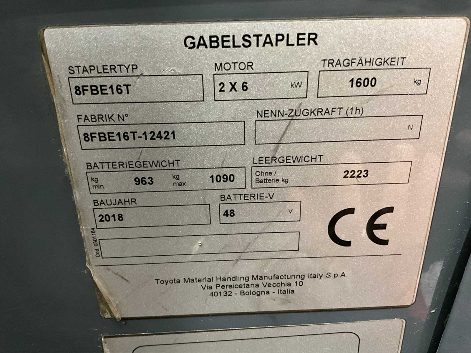 Toyota – 8FBE16T – Forklift 2018- Freelift – Sideshift – plastic roof – 4th function