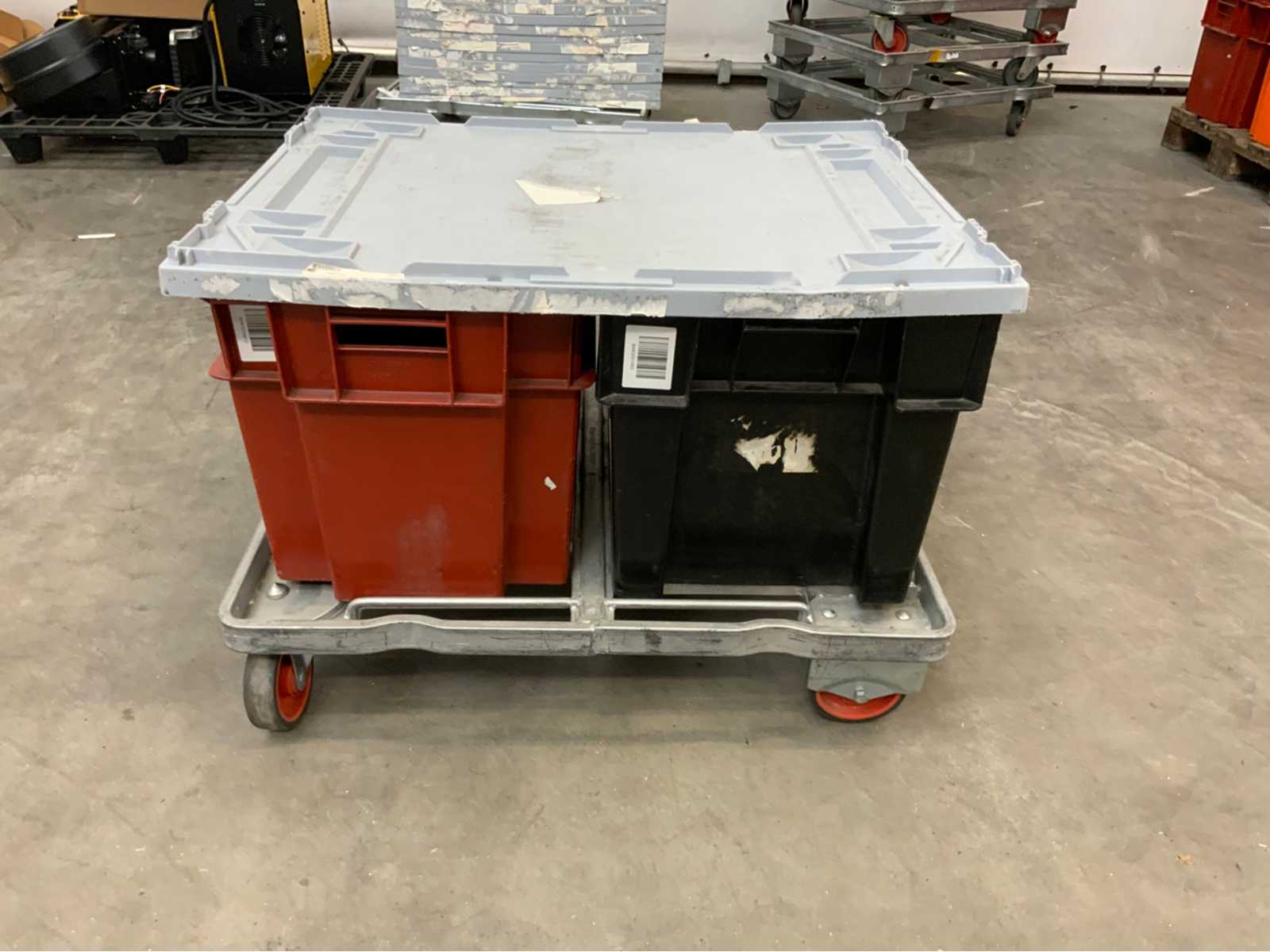 Transport dolly with 2 bins and lid (5x)