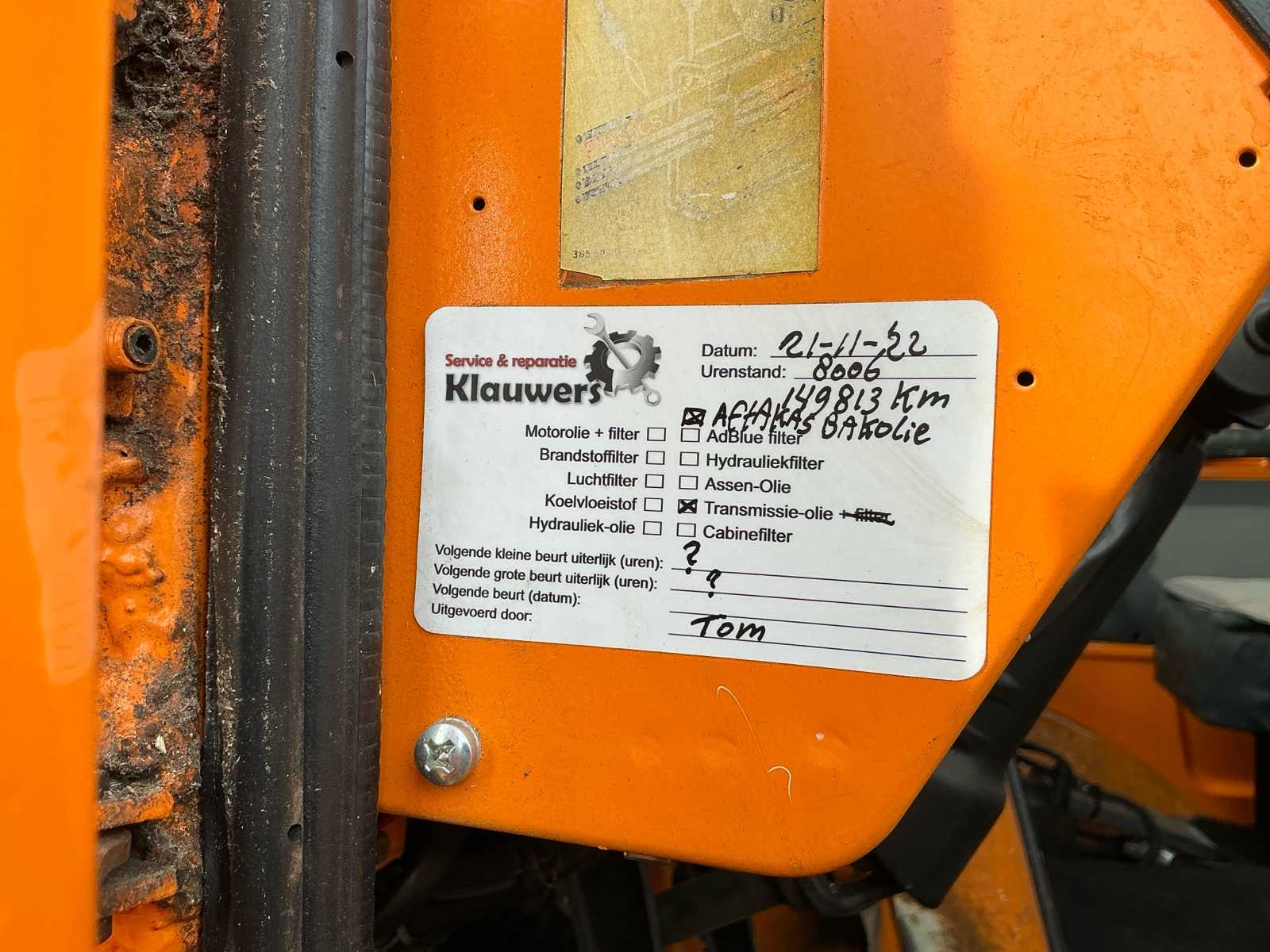 | Description | Equipped with: front PTO, 2x double-acting hydraulic valves front, high pressure connection front, jaw towbar front, front pegboard, work lights, beacon bar, extra large fuel, tipper chassis, checker plate storage box, towbar rear k50, air connection, lock, 2x double-acting valves rear, heavy spring package, weighted steering pump, weighted hydraulic motor, NL License plate Engine Hour Reading: 9030 |