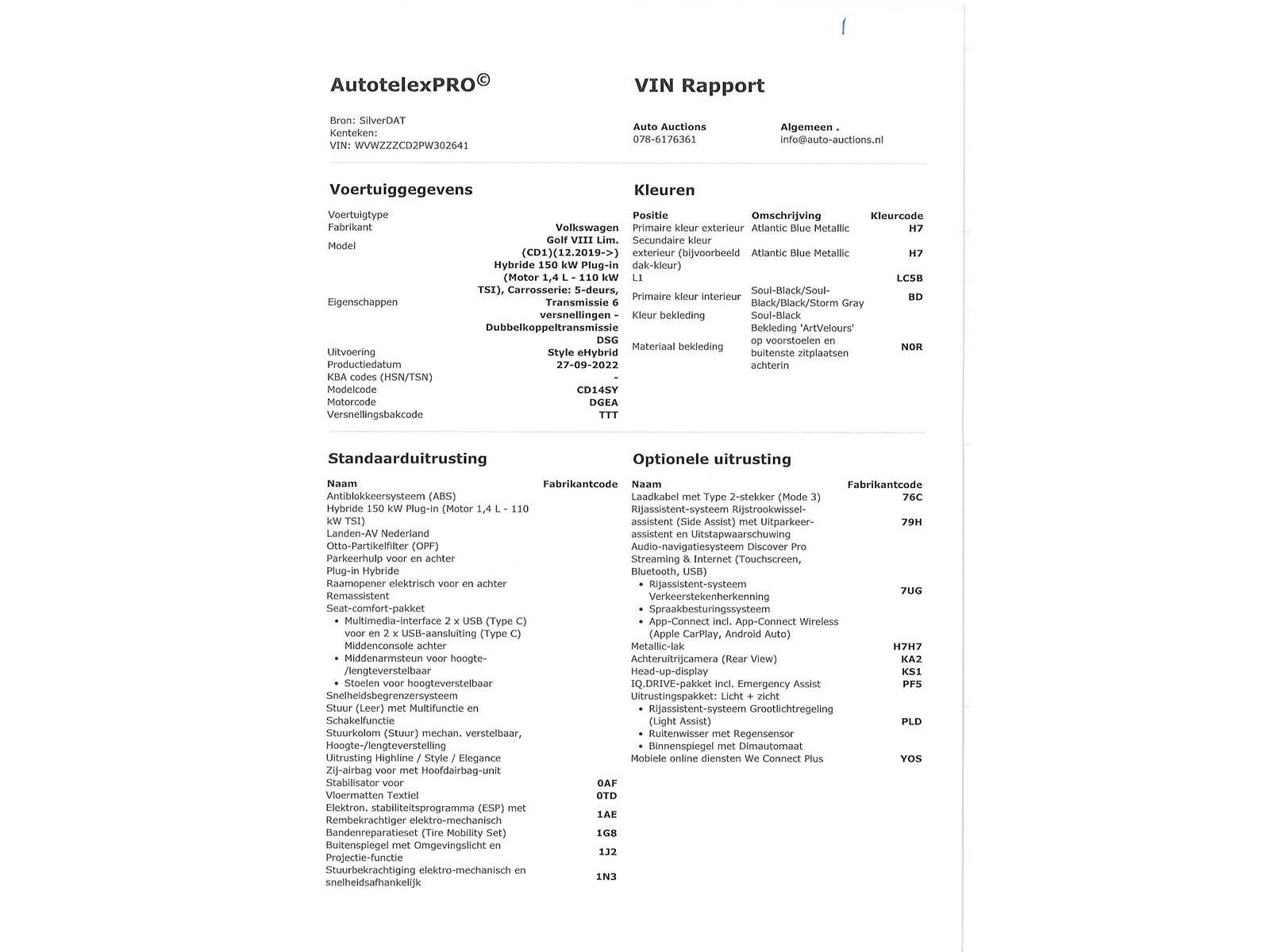| Description | German registration papers. If desired, we can take care of the entire import process for you, RDW import, BPM valuation, customs clearance, storage, etc. If you have any questions, please email info@auto-auctions.nl |