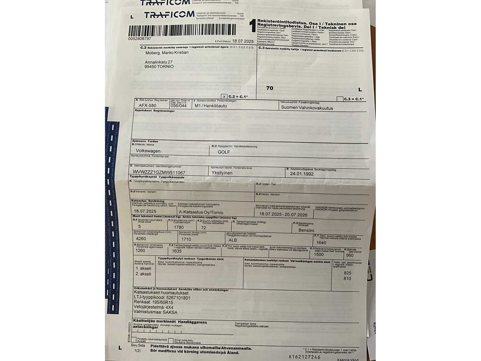 | Description | Finnish registration see photo, 4×4 |