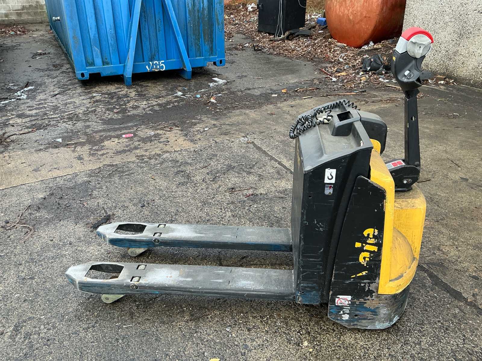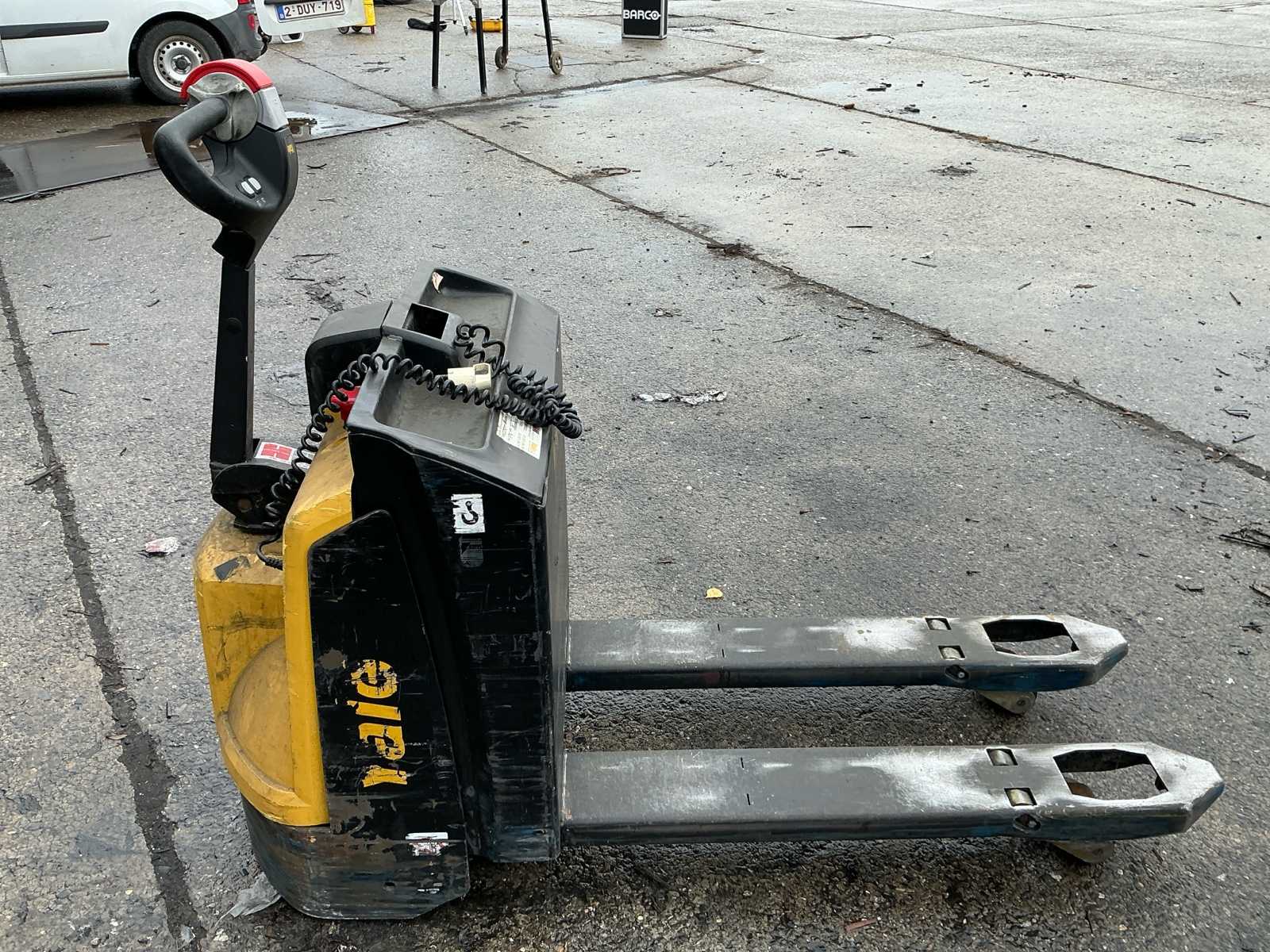 Offered: Yale MP18 Electric Pallet Truck. This electric pallet truck is suitable for internal transport of pallets in warehouses, workshops and logistics environments. Still in functional, usable condition with visible signs of wear, see photos. Has an internal charger to be charged with 230v.
